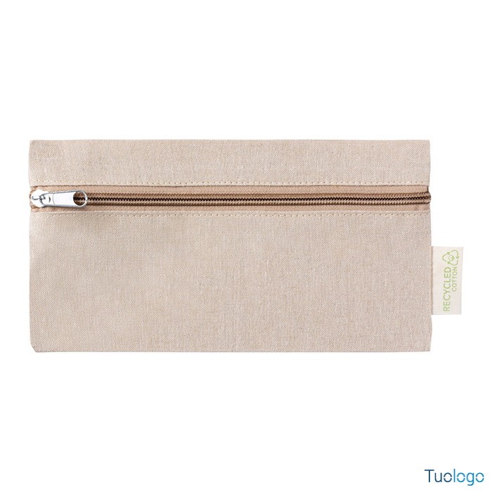 Portapenne Soutelo. Astuccio per penne in 100x100 cotone riciclato con cerniera ed etichetta. Dimensioni: cm 22x11,5.