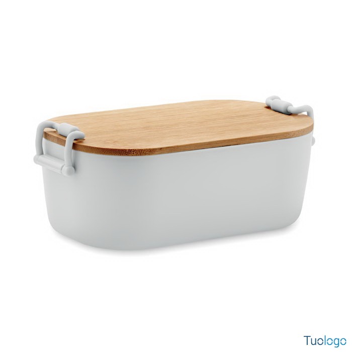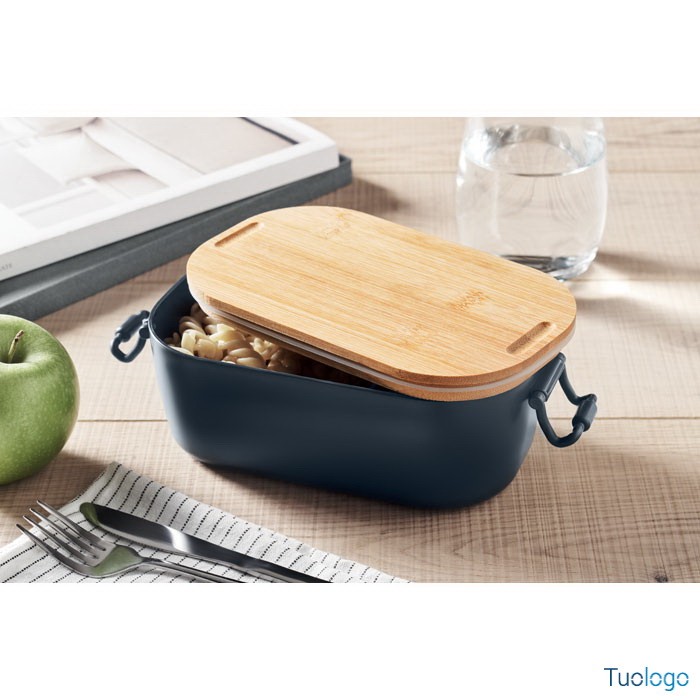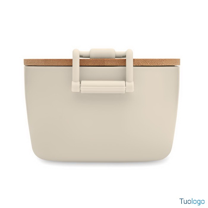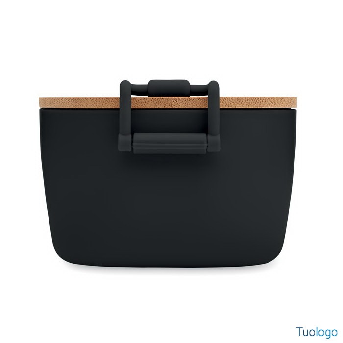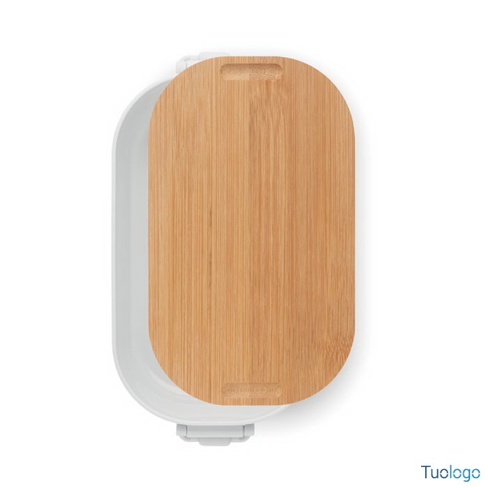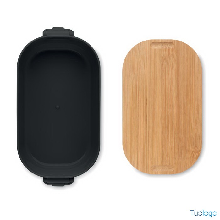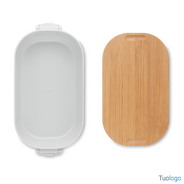 Portapranzo con chiusura e coperchio Borà. Portapranzo in PP con chiusura a 2 lati e coperchio in bamboo. Capacità 700 ml. Dimensioni: cm 18x10.5x7.