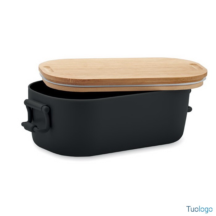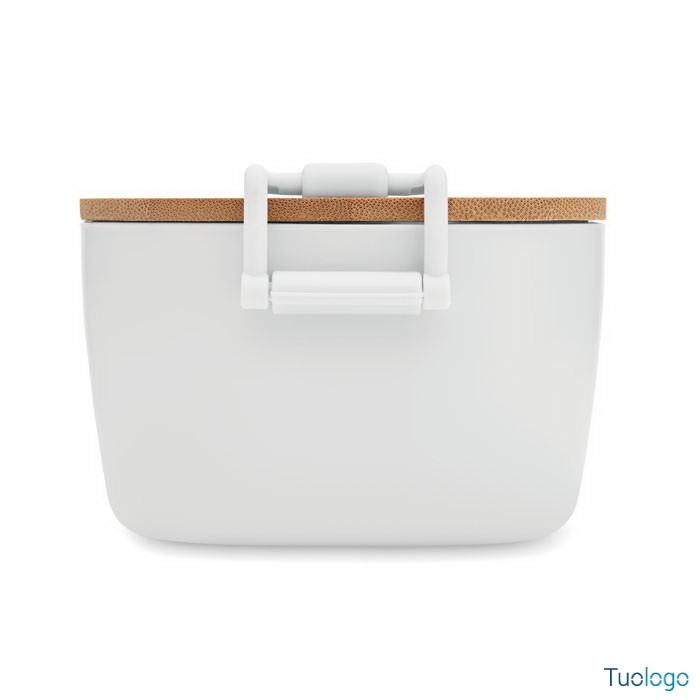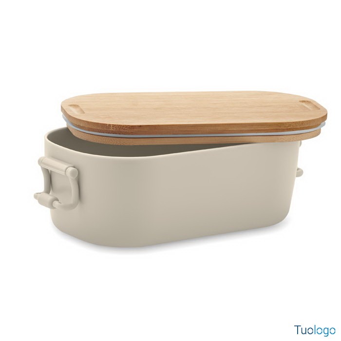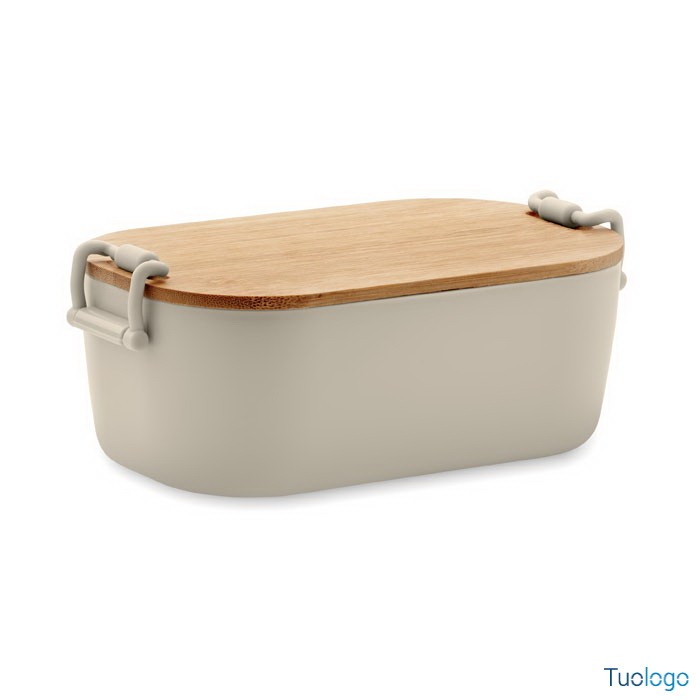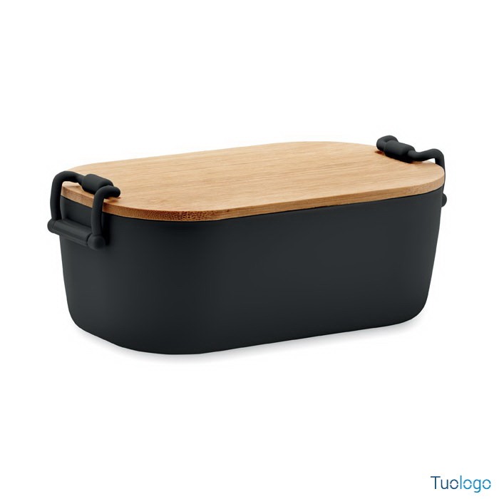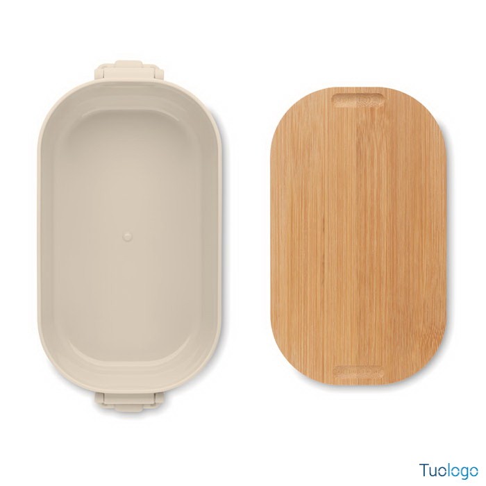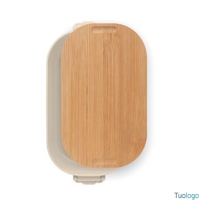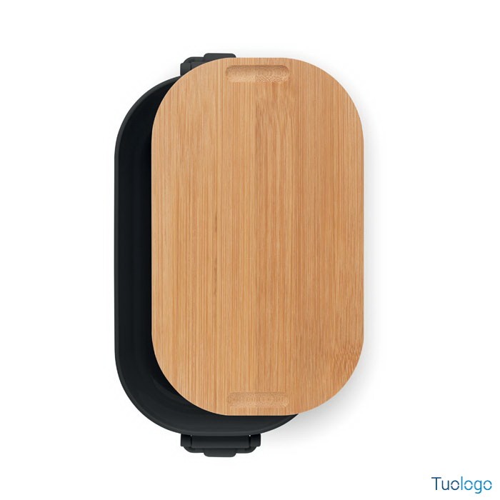 Portapranzo con chiusura e coperchio Borà. Portapranzo in PP con chiusura a 2 lati e coperchio in bamboo. Capacità 700 ml. Dimensioni: cm 18x10.5x7.