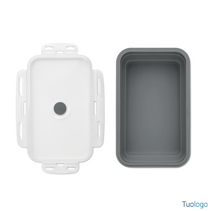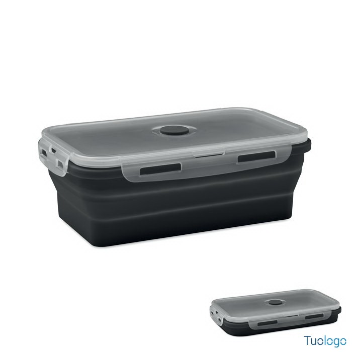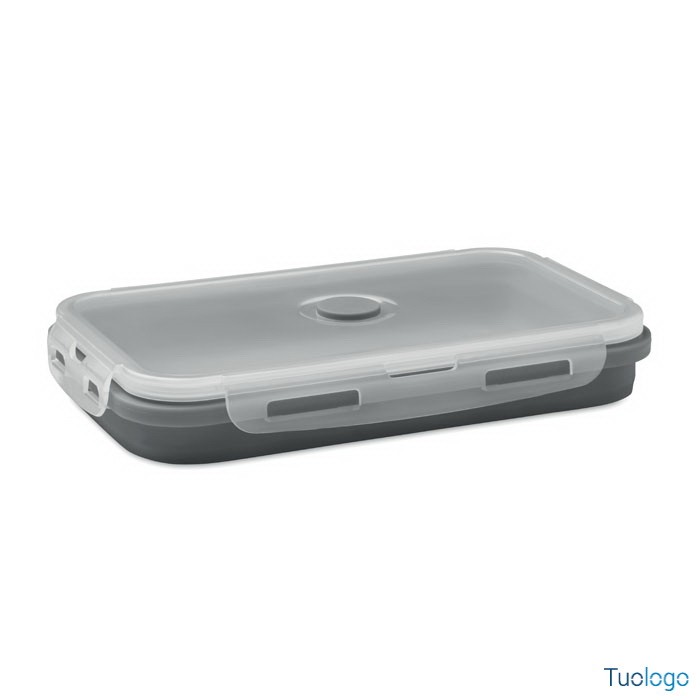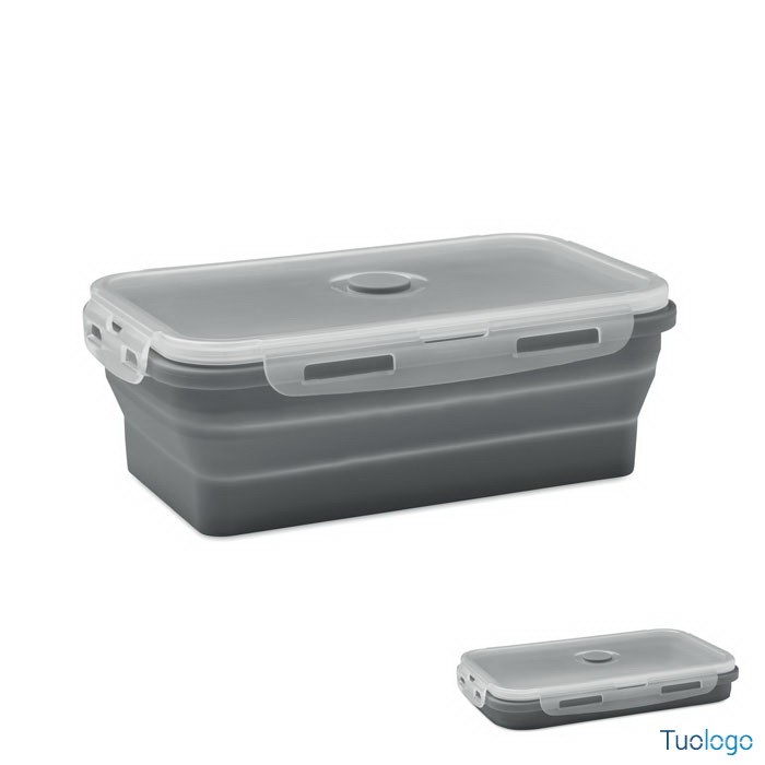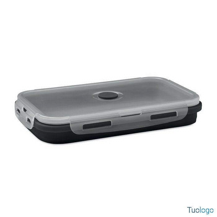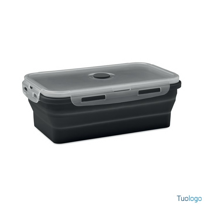 Portapranzo pieghevole in silicone Lumbi. Portapranzo pieghevole in silicone con coperchio in PP e valvola in silicone. Capacità: 1200 ml.Dimensioni: cm 21x13x7.