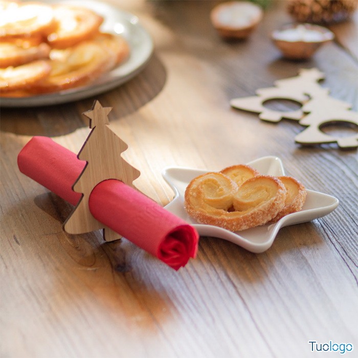Portatovaglioli Ddagmi. Set da 4 pezzi di portatovaglioli a forma di albero di Natale in compensato di bambù. Dimensioni: cm 7,5x9,6x1,2.
