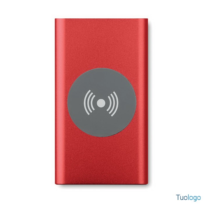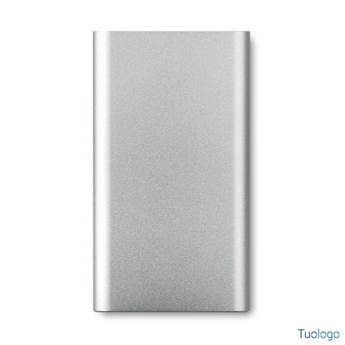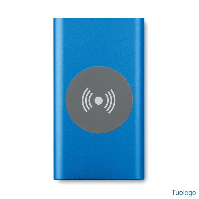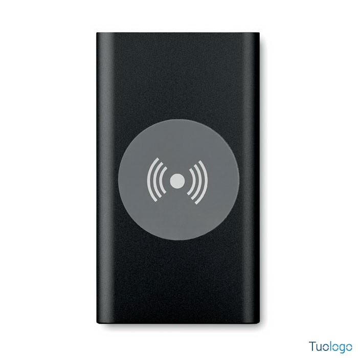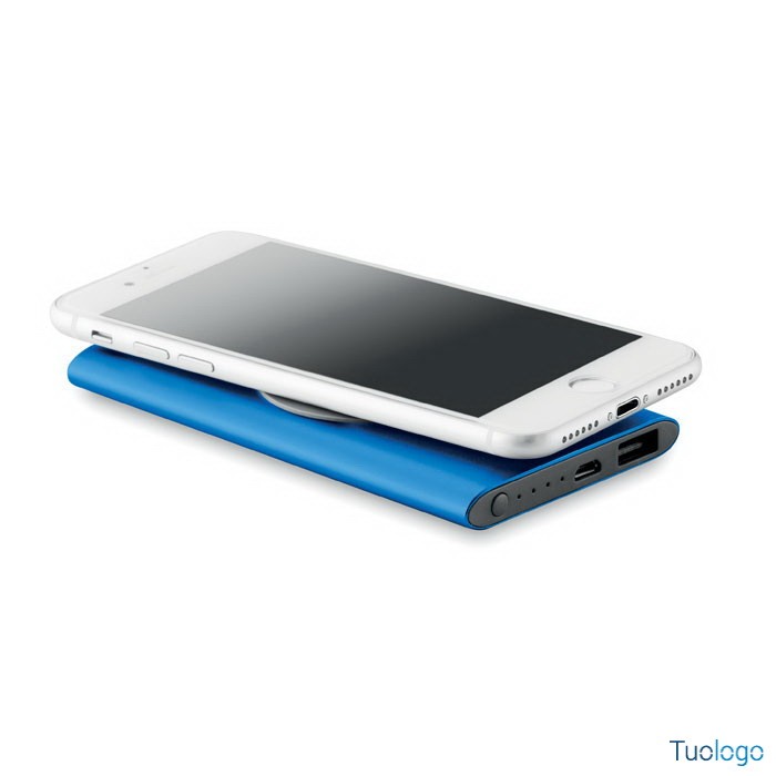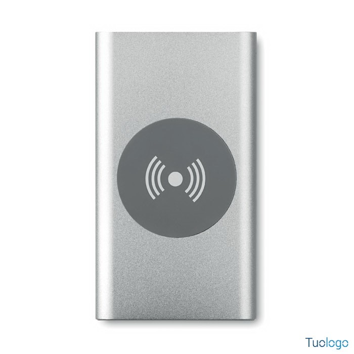 Powerbank 4000 mAh Lucinasco. Powerbank wireless in alluminio. Include connettore di tipo C. Output: DC5V / 1.0A. Dimensioni: cm 12x6,5x0,9.