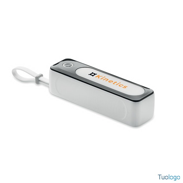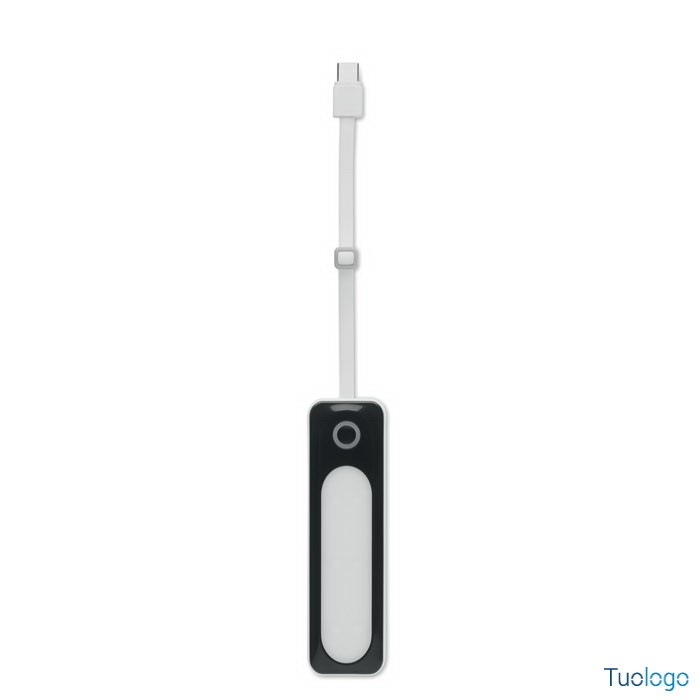 Powerbank 5000 mAh Olmeto. Power banK da 5000 mAh in ABS. Corrente di uscita DC5V 2A. Include indicazione a 4 luci 6 COB led e un cavo USB integrato con connettore di tipo C. Dimensioni: cm 98x29x28. Per uso smartphone. Output DC5V / 1A.
