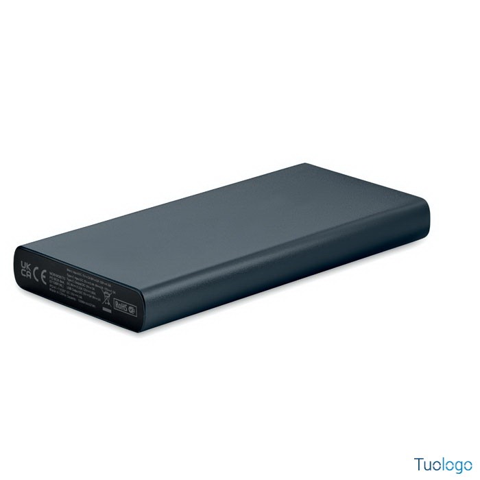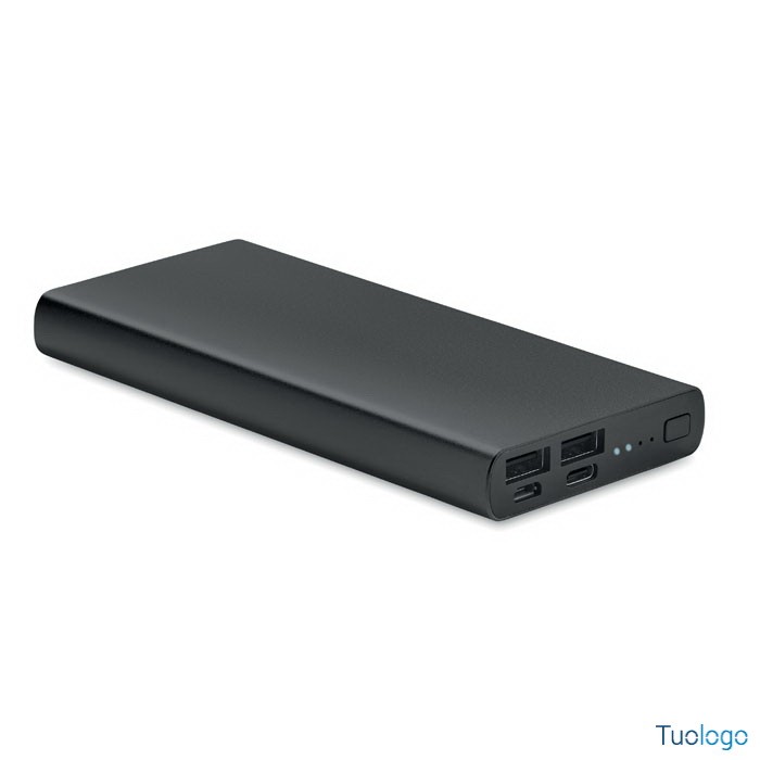 Powerbank in alluminio Gielas. Power bank da 10000 mAh in alluminio riciclato. Corrente di uscita DC5V/1A e DC5V/2A. Include spia luminosa e cavo USB con spina micro usb.Dimensioni:cm 14.2x6.6x1.6. Supporta la tecnologia di ricarica rapida. Ingresso/uscita: Type-C. Supporto Power Delivery per caricare il più recente laptop MacPro.