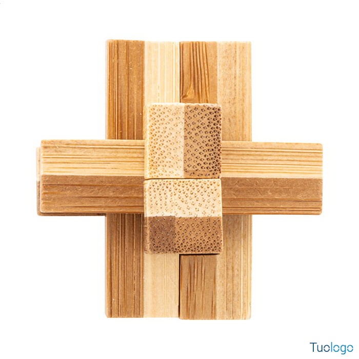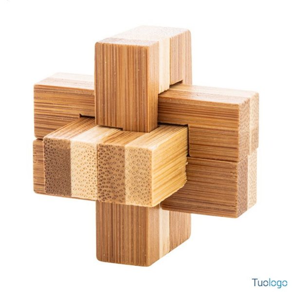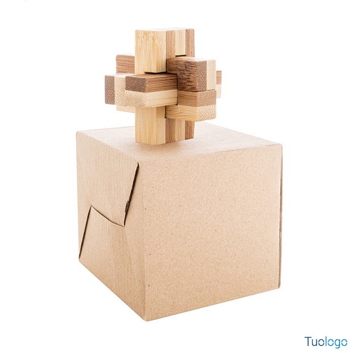 Puzzle in bamboo Pike. Puzzle magico in bamboo confezionato in una scatola di cartoncino kraft. Dimensioni: diam cm 4,5×4,5×4,5.