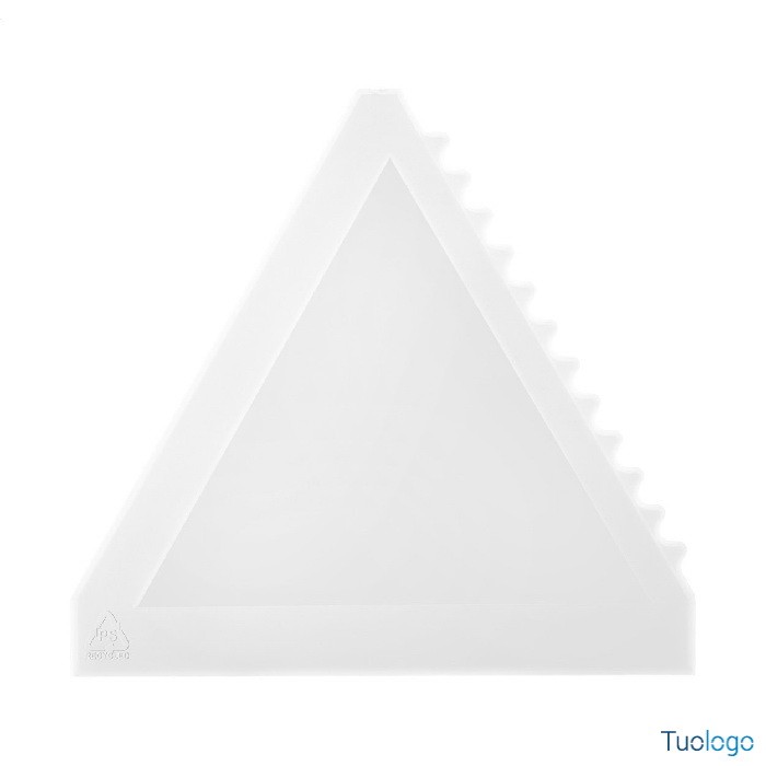 Raschietto per il ghiaccio Fontas. Raschia ghiaccio triangolare in plastica PS riciclata. Dimensioni: diam cm 11,5×10,9×0,2.