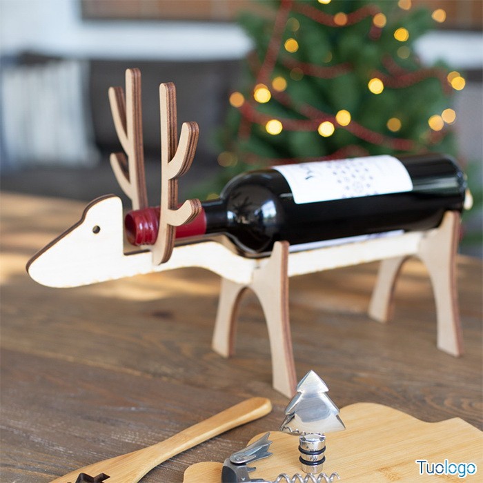 Reggibottiglia Puerto Cardenas. Reggibottiglia a forma di renna in multistrato di betulla. Consegnato smontato. Dimensioni: cm 43,3x15,4x26,3.