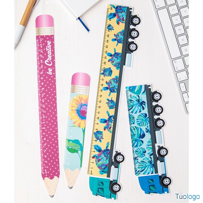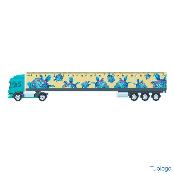 Righello in plastica 30 cm Gorda. A forma di camion. I prezzi includono la stampa in quadricromia su 1 lato. Dimensioni: cm 35x65.