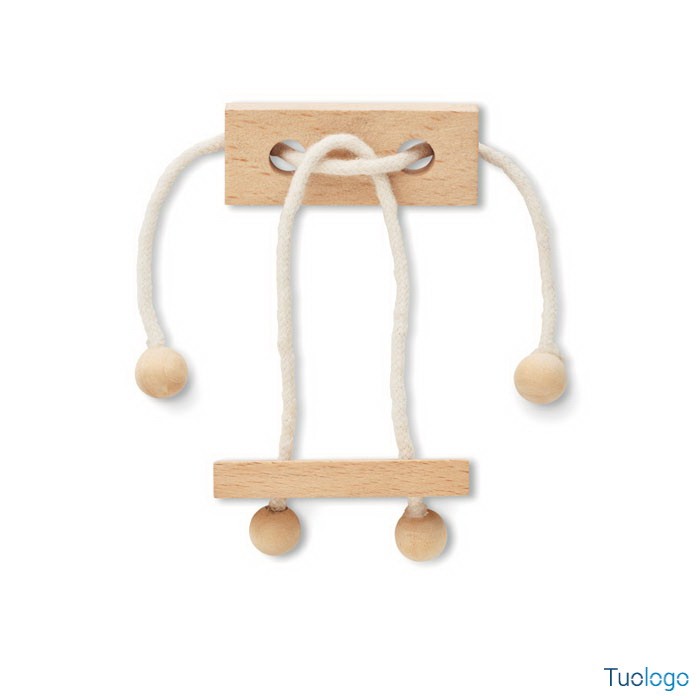 Rompicapo in legno. Rompicapo a forma di rettangolo, in confezione di carta riciclata. Dimensioni: cm 5,5x2,1.