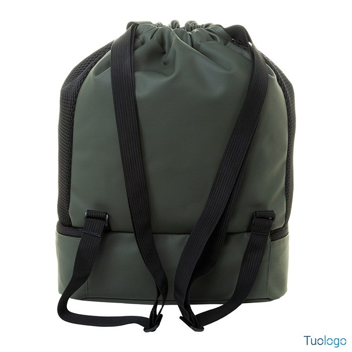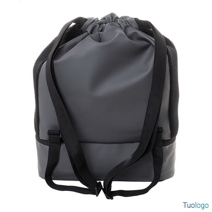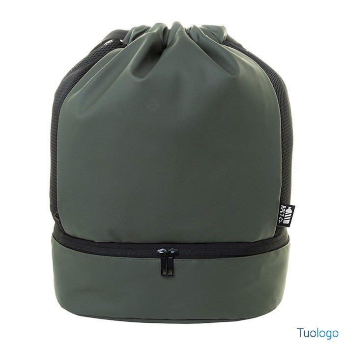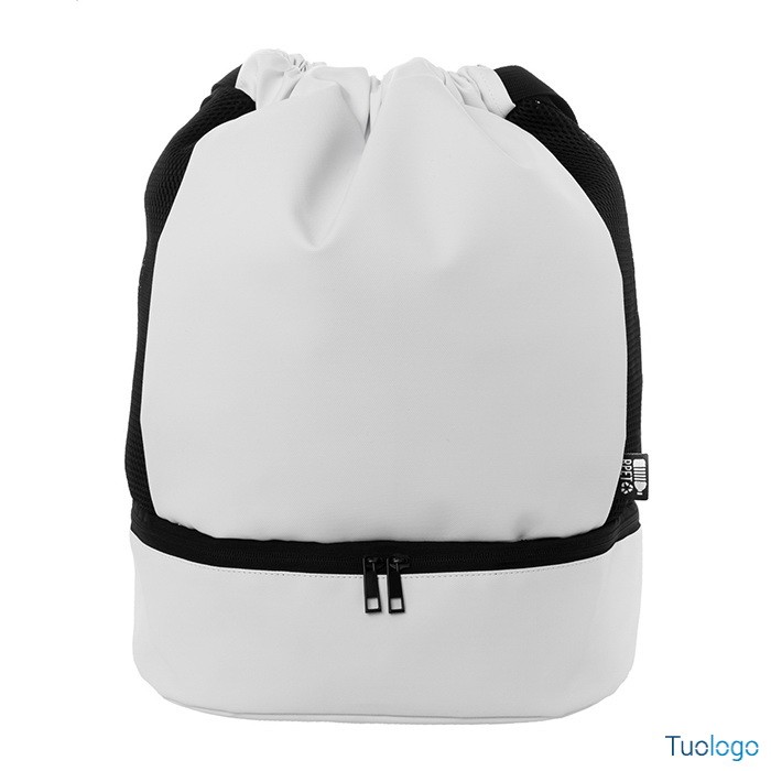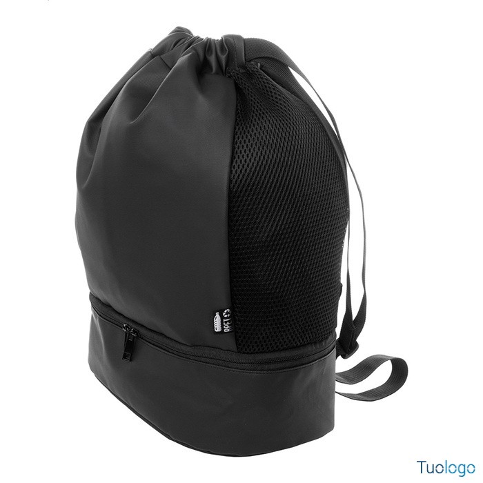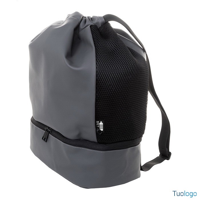 Sacca con chiusura a coulisse Dab. Sacca con chiusura a coulisse in poliestere 600D RPET, rivestimento in PU, scomparto per scarpe chiuso da cerniera, inserti laterali in rete, cinghie ed etichetta. Dimensioni: cm 32×47×18.