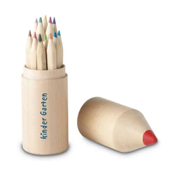 Set 12 Matite Castroregio. Contenute in simpatico astuccio in legno a forma di matitone. Dimensioni: cm 3,5x3,5x13,5.