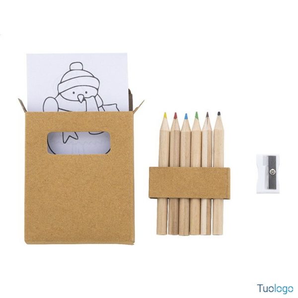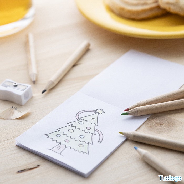 Set colori natalizio Ly. Set per colorare a tema natalizio composto da 6 matite colorate in legno, temperino e album da colorare. Set fornito in scatola di cartoncino kraft. Dimensioni: cm 7,3x8,9x1,5.