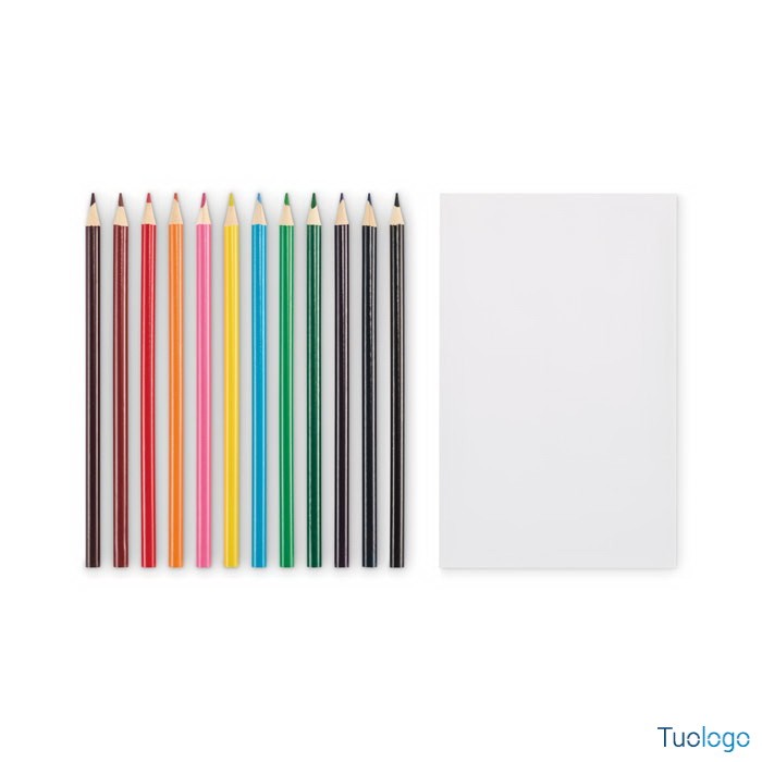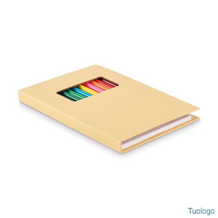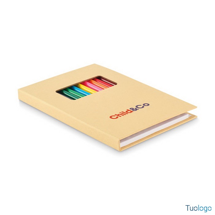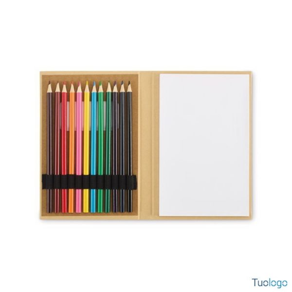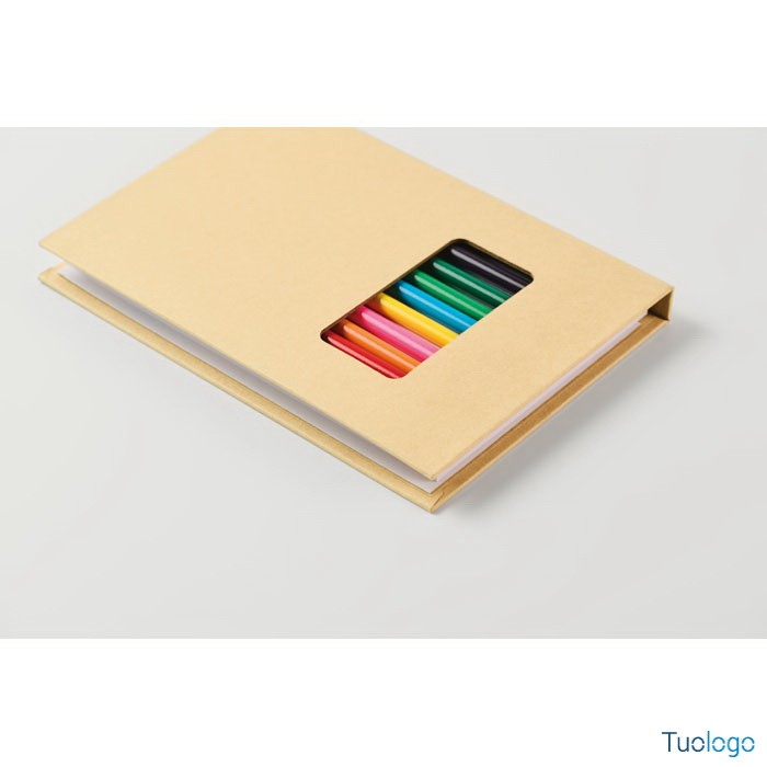 Set da disegno per bambini Andrioa. Set da disegno per bambini con 50 fogli di carta riciclata e 12 matite colorate in legno. Copertina in carta kraft. Dimensioni: cm 13.7x20x1.7.