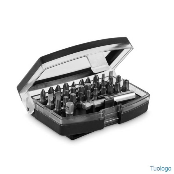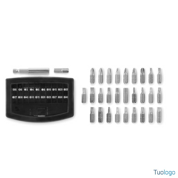 Set di punte per cacciavite Boxford. Set di punte per cacciavite da 32 pezzi con porta-clip rotante. Dimensioni: 10,7x7,2x4,3 cm