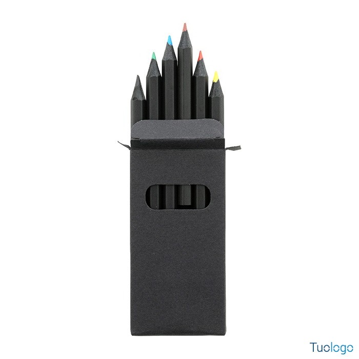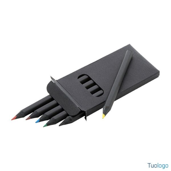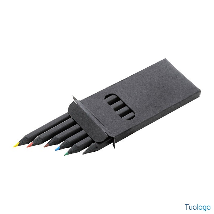 Set matite Kiana. Set di 6 matite in legno nero contenute in una scatola di cartoncino nero. Dimensioni: diam cm 4,5×9×0,9.