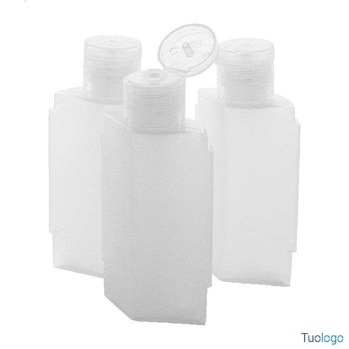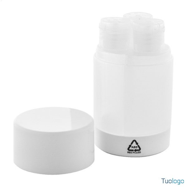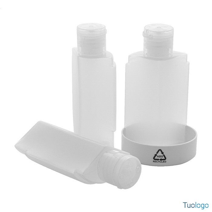 Set viaggio Buttinge. Set viaggio composto da 3 flaconcini per cosmetici in PET ,40 ml, e contenitore di ABS riciclato. Dimensioni: cm 5,1x8,9.