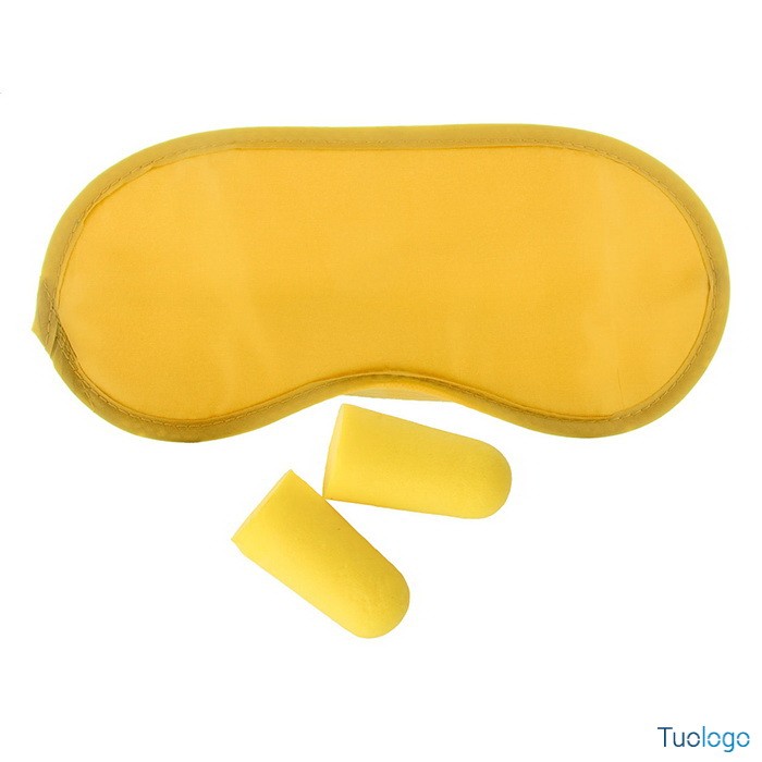 Set viaggio Ruston. Con maschera per gli occhi e tappi per le orecchie gialli. Dimensioni: cm 19x9.