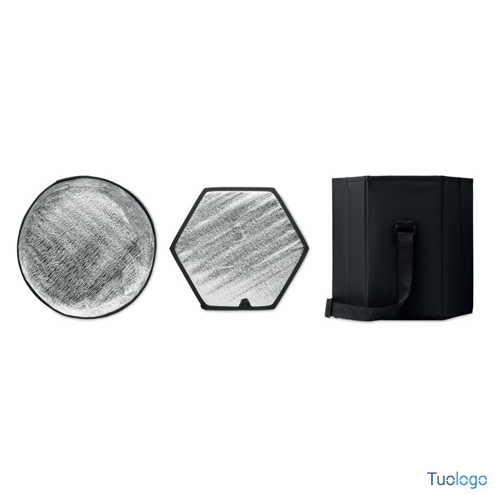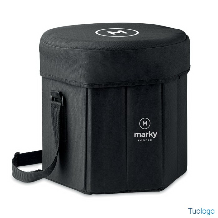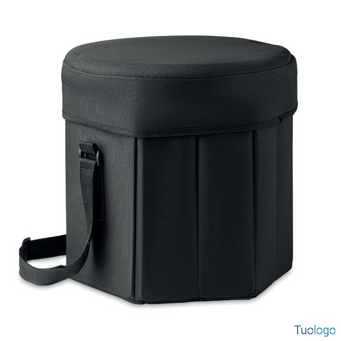 Sgabello borsa termica Campino. In poliestere 600D con borsa termica isolata con foglio di alluminio e cinghia da trasporto. Peso massimo 80 kg. Dimensioni: diam cm 30x8.