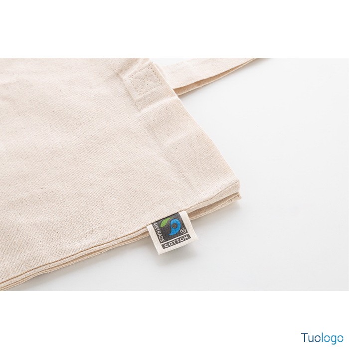 Shopper in cotone Fairtrade Atala. 100% cotone equosolidale da 180 gr con manici lunghi ed etichetta Fairtrade. Dimensioni: cm 38x42.