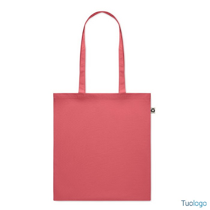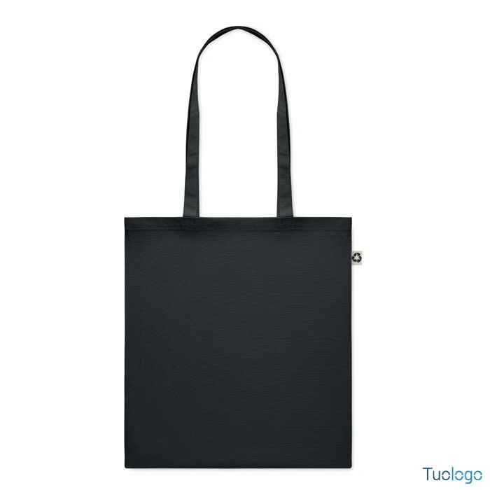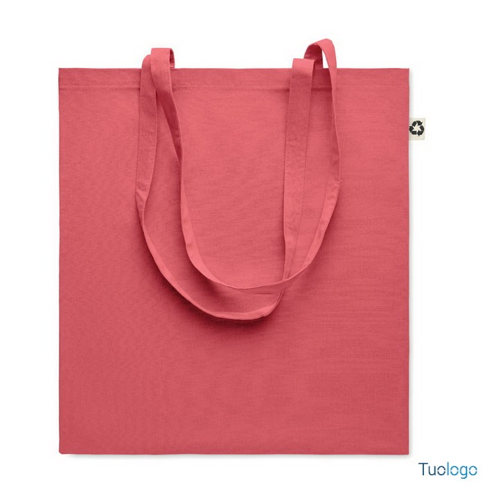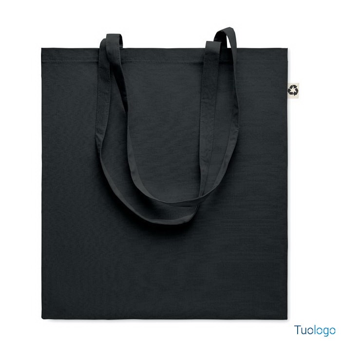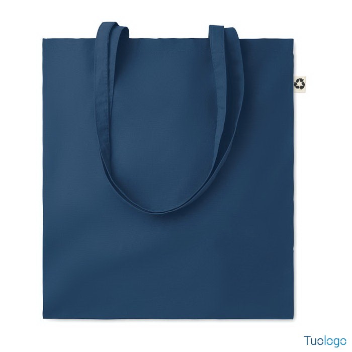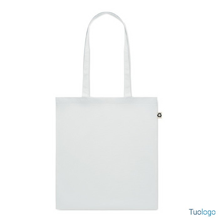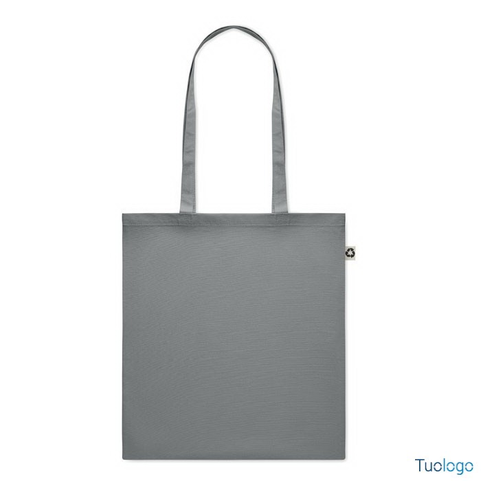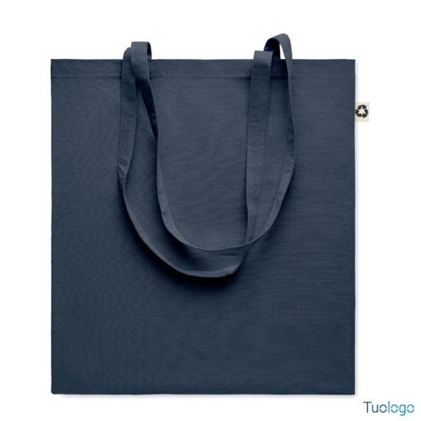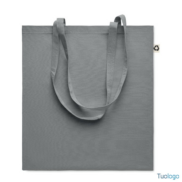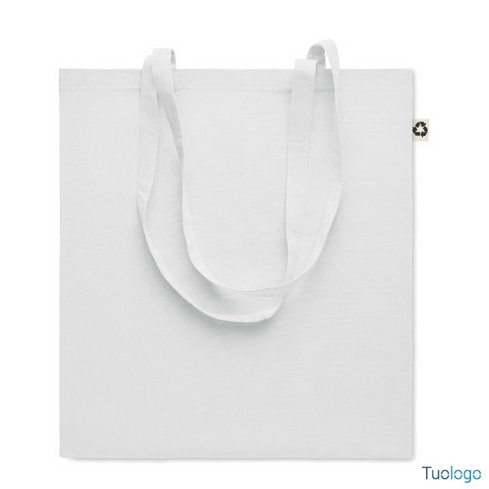 Shopper in cotone riciclato Nespoli. Borsa shopper in 65% cotone riciclato, 35% cotone con manici lunghi. 140 gr/m. Dimensioni: cm 38x42.