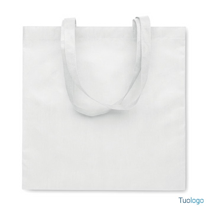 Shopper in TNT 80 gr Moscufo. Shopper o borsa mare in TNT RPET con manici lunghi. 80 gr. Dimensioni: cm 38x42.