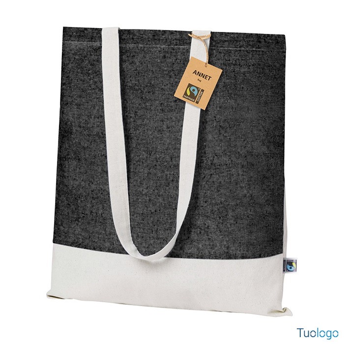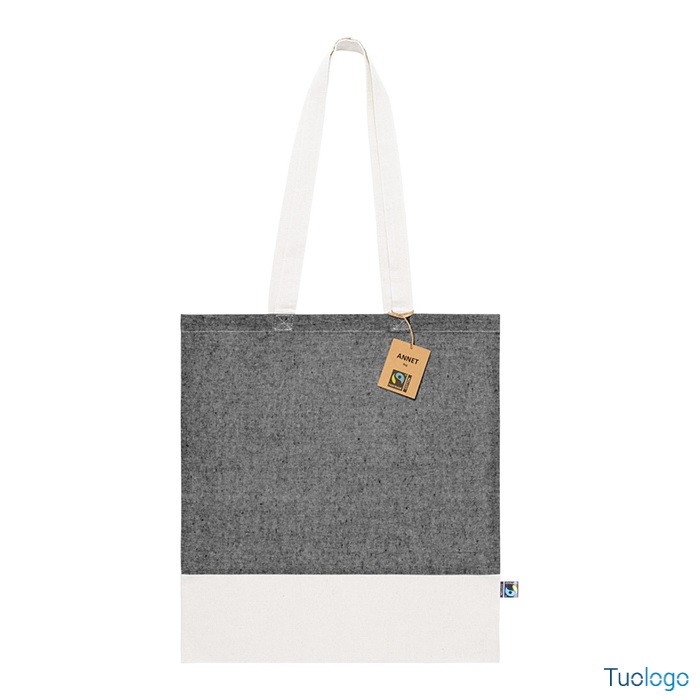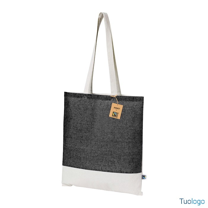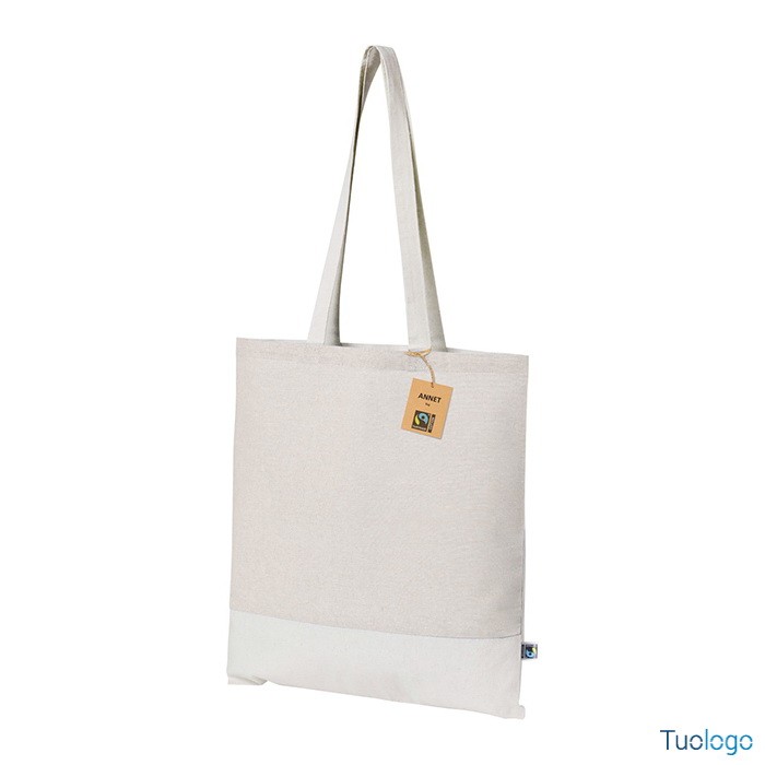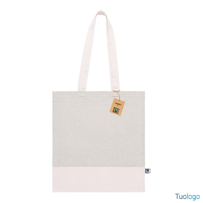 Shopper Sistelo. Borsa per la spesa riutilizzabile in 100x100 cotone equosolidale bicolore con manici lunghi, 140 g. Con etichetta Fairtrade. Dimensioni: cm 37x41.