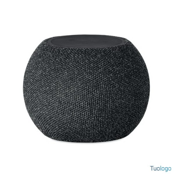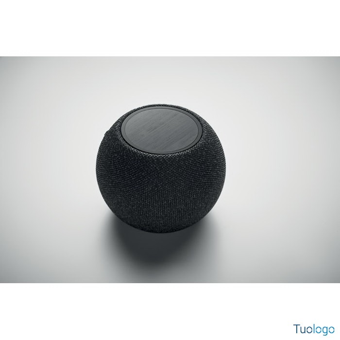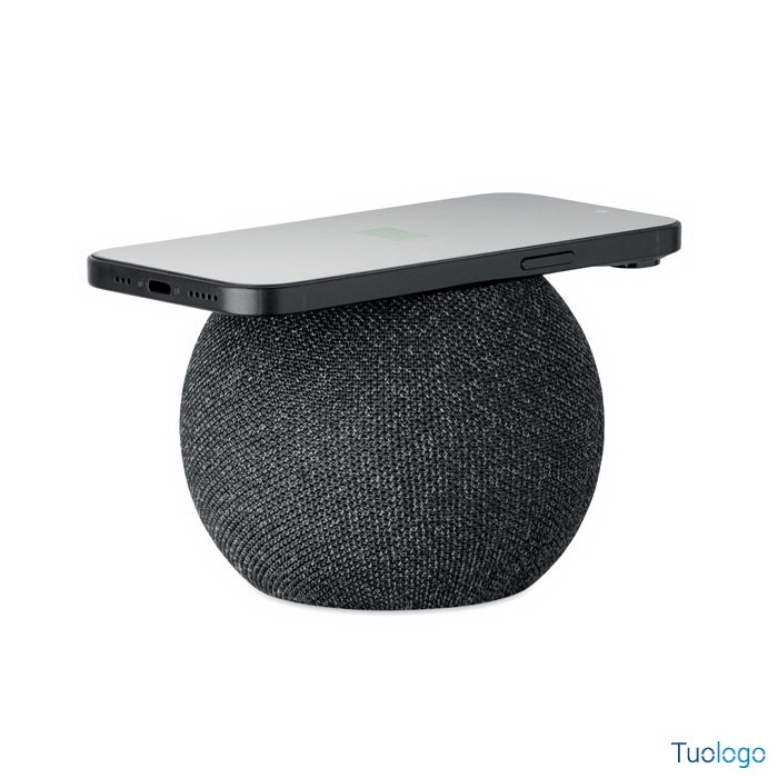 Speaker e ricarica wireless Flyn. Speaker wireless 5.0 e ricarica wireless 15W in ABS, tessuto RPET e dettagli in bambù sulla parte superiore. 1 batteria ricaricabile Li-ION da 1200 mAh inclusa. Dimensioni: 10,8x9,2. Porta per schede SD e un cavo AUX/USB. Dati di uscita: 3W, 3 Ohm e 5V. Tempo di riproduzione di circa 5 ore.