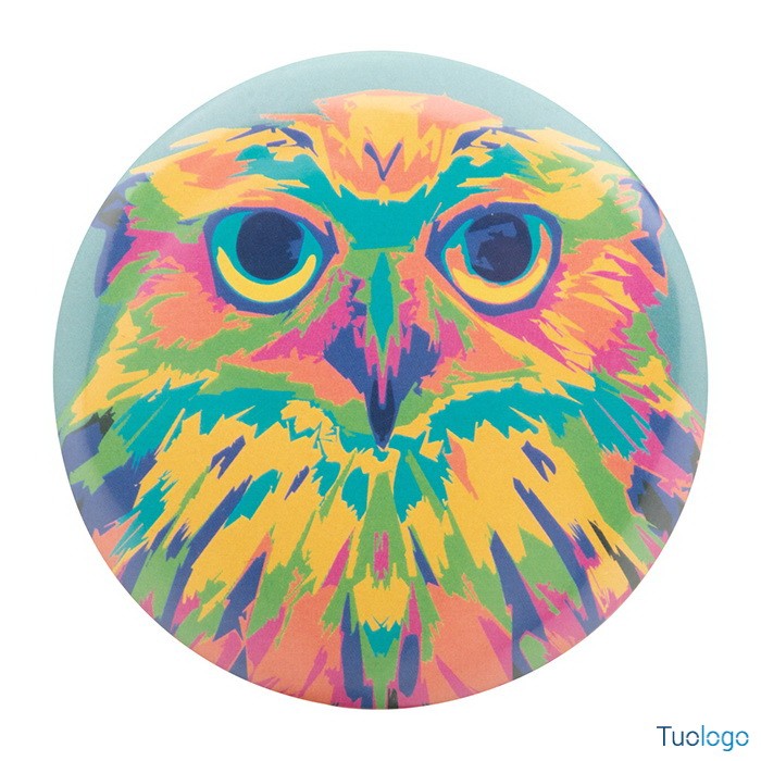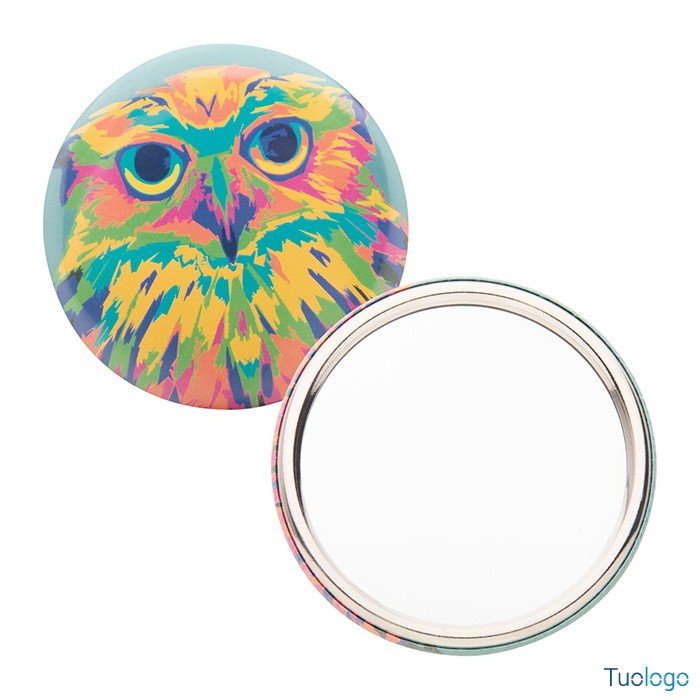 Specchietto Kukerin. In metallo con specchietto sul retro. I prezzi includono la stampa in quadricromia su 1 lato. Dimensioni: cm diam 7,5.