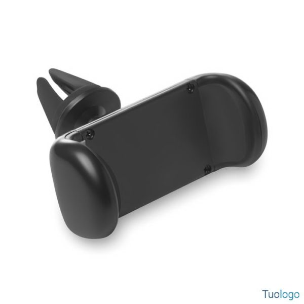 Supporto smartphone auto Zuglio. In plastica, universale con apertura bilaterale. Rotazione 360°. Dimensioni: cm 7x7x3.
