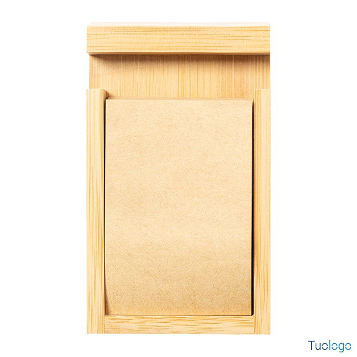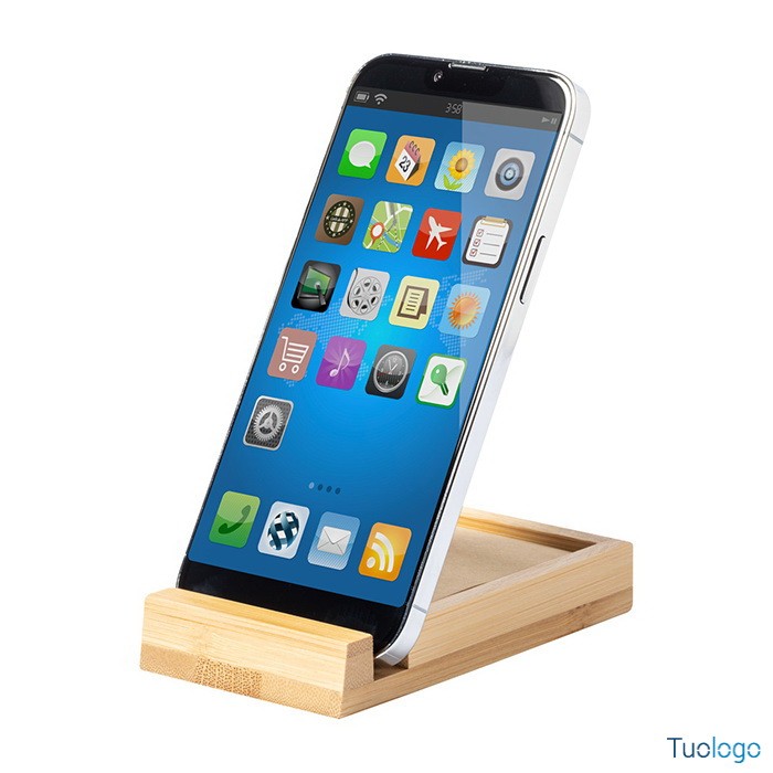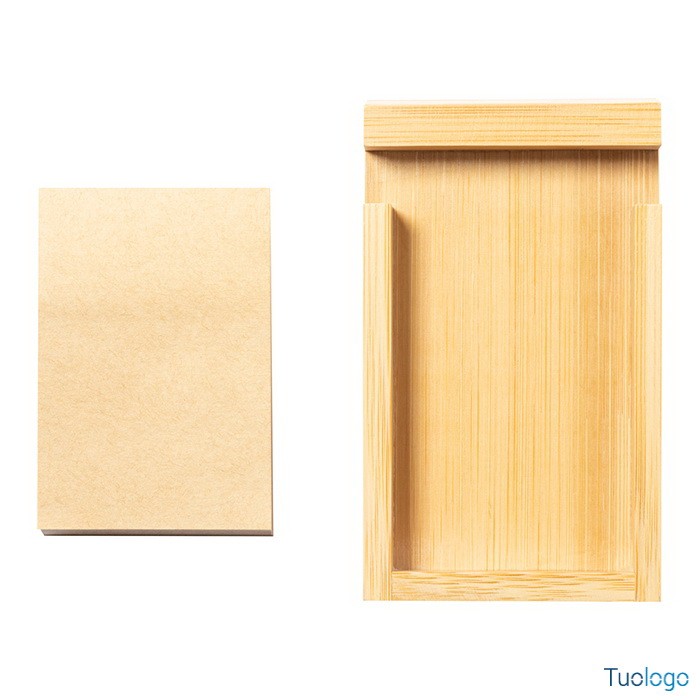 Supporto smartphone Ouro. Supporto in bambù per telefono cellulare con blocco per appunti in carta kraft riciclata da 200 fogli. Dimensioni: cm 11,8x1,9x7.