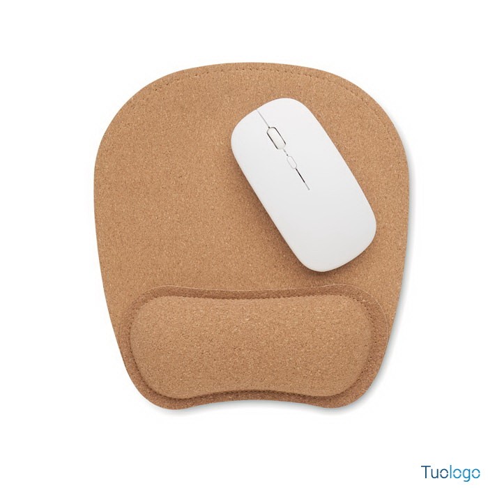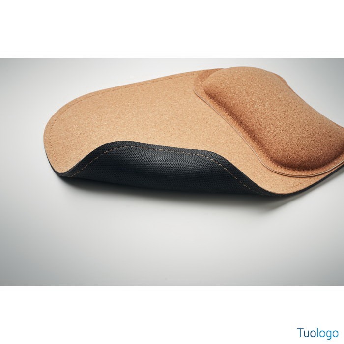 Tappetino mouse sughero Soarza. Tappetino mouse ergonomico in sughero con supporto per i polsi. Ha una base in gomma antiscivolo. Dimensioni: cm 21,5x20x2,5.