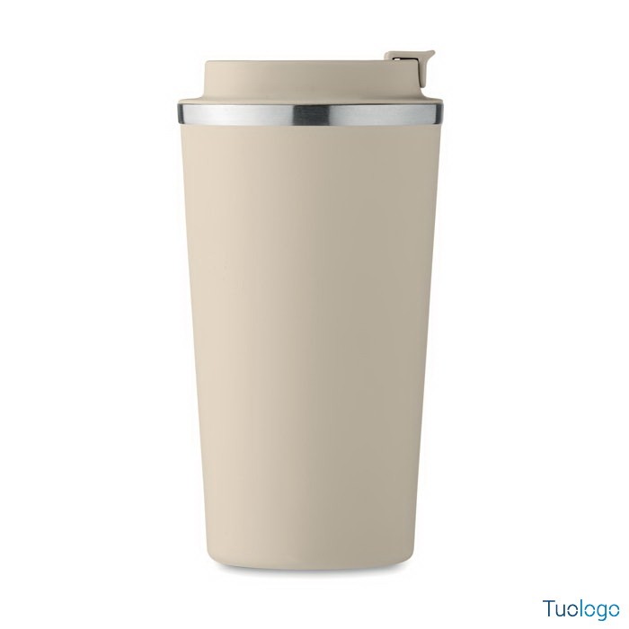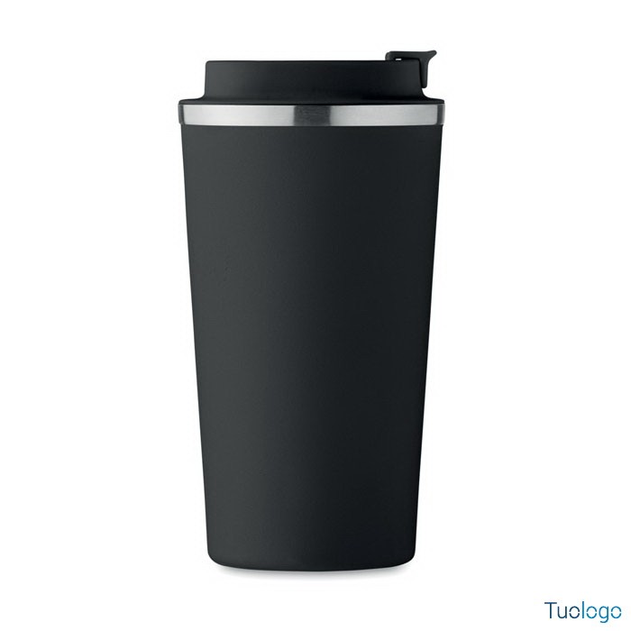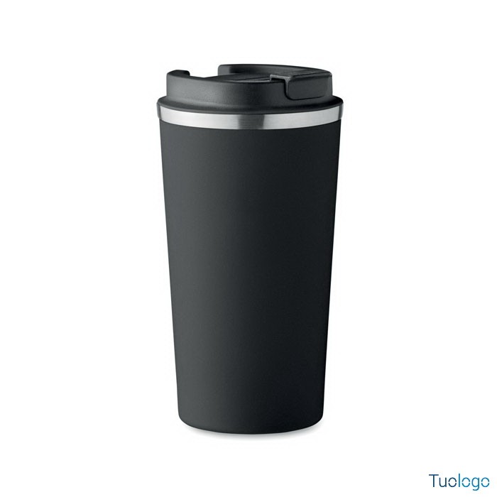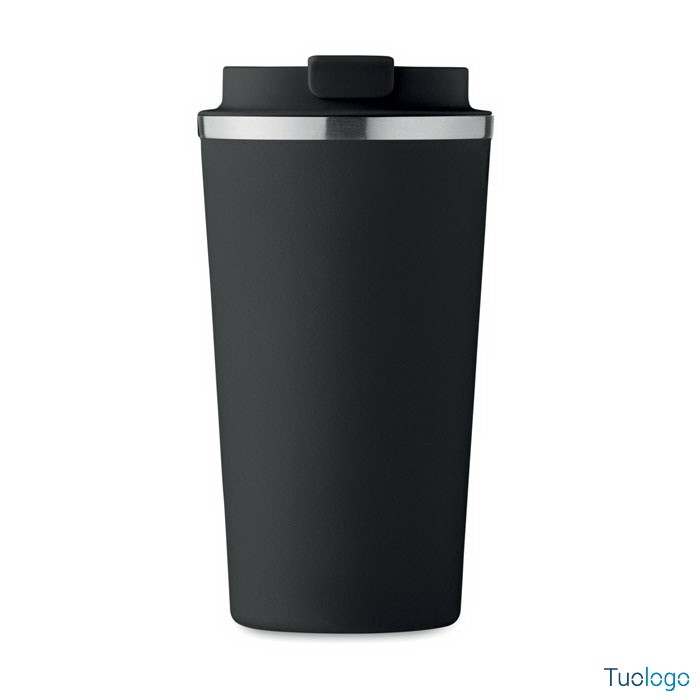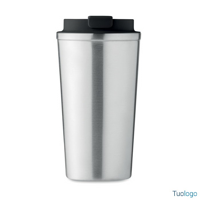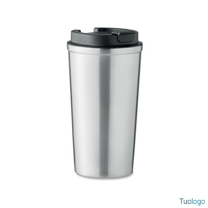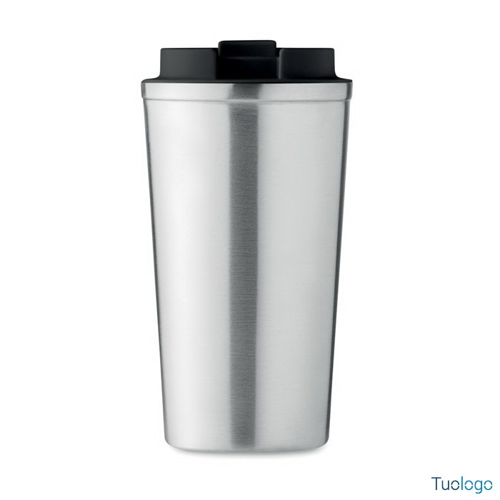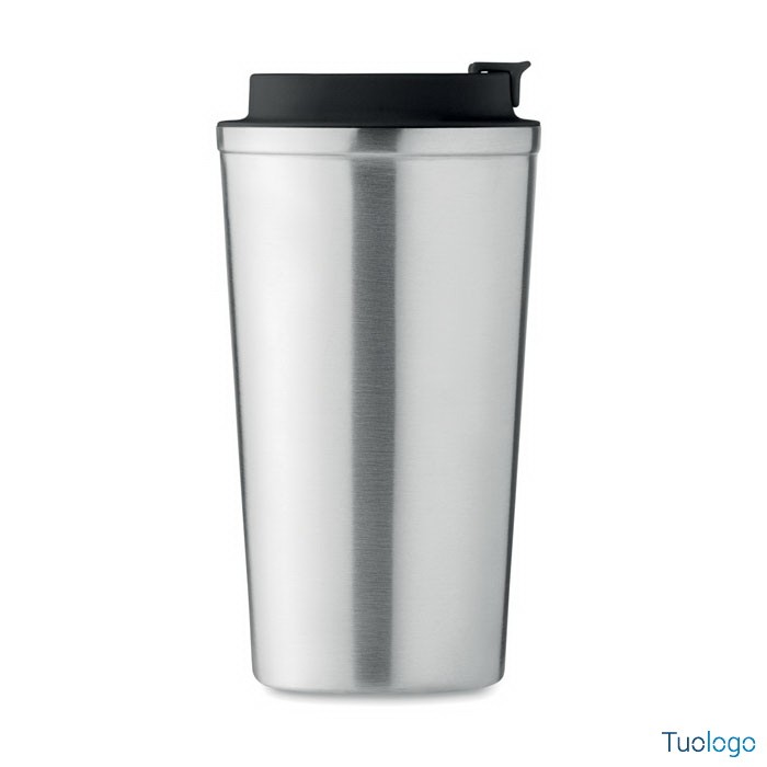Tazza acciaio Praglia. Con doppia parete in acciaio inossidabile con coperchio in PP. Capacità: 510 ml. Senza perdite. Dimensioni: diam cm 8,5x17.