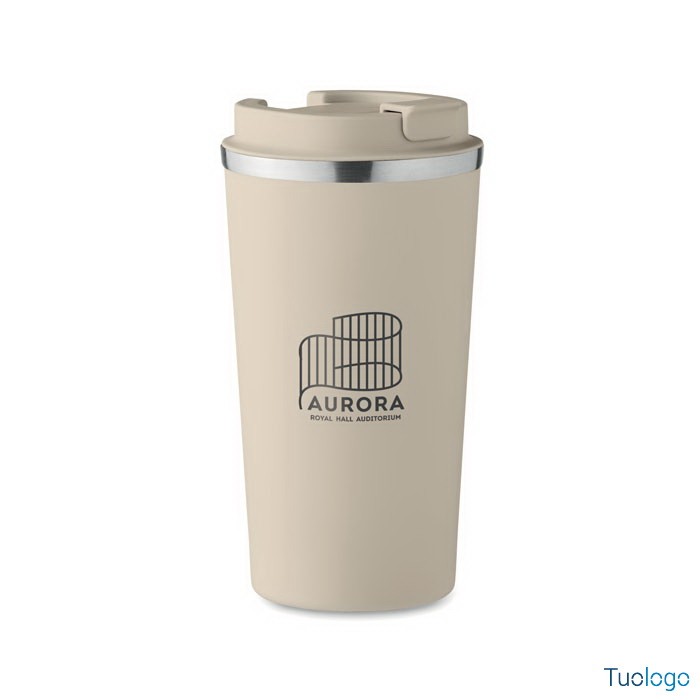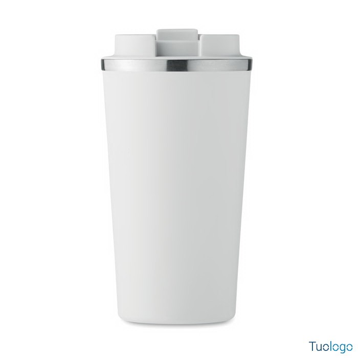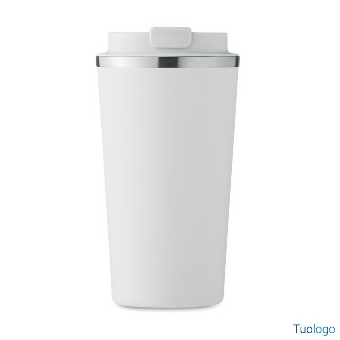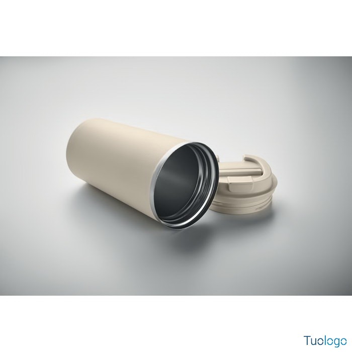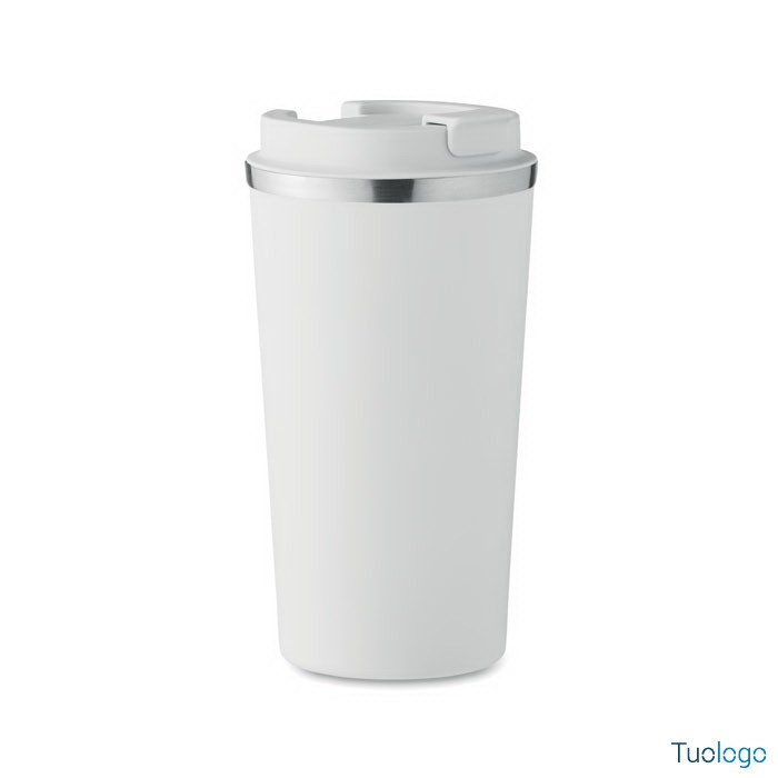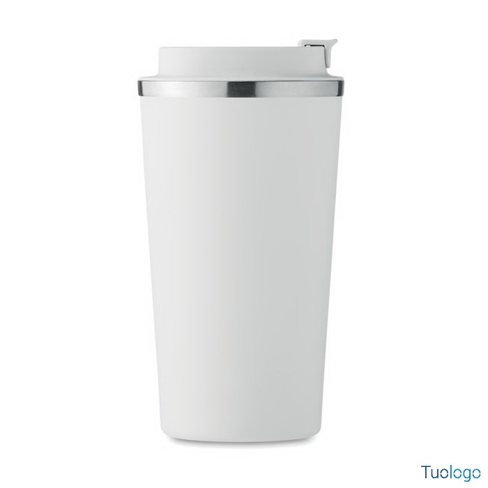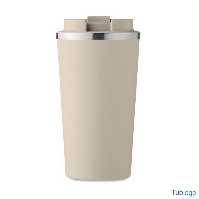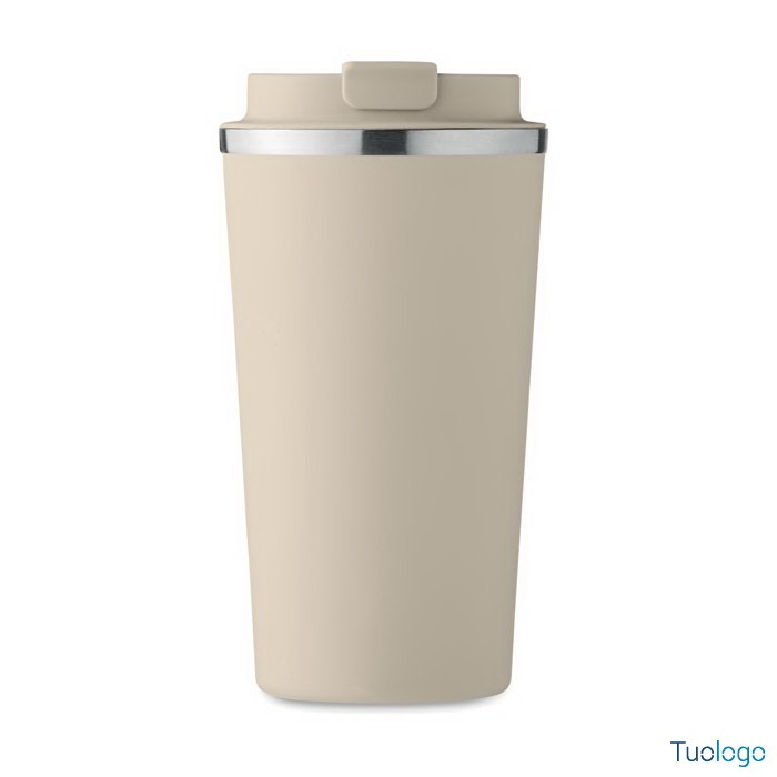 Tazza acciaio Praglia. Con doppia parete in acciaio inossidabile con coperchio in PP. Capacità: 510 ml. Senza perdite. Dimensioni: diam cm 8,5x17.