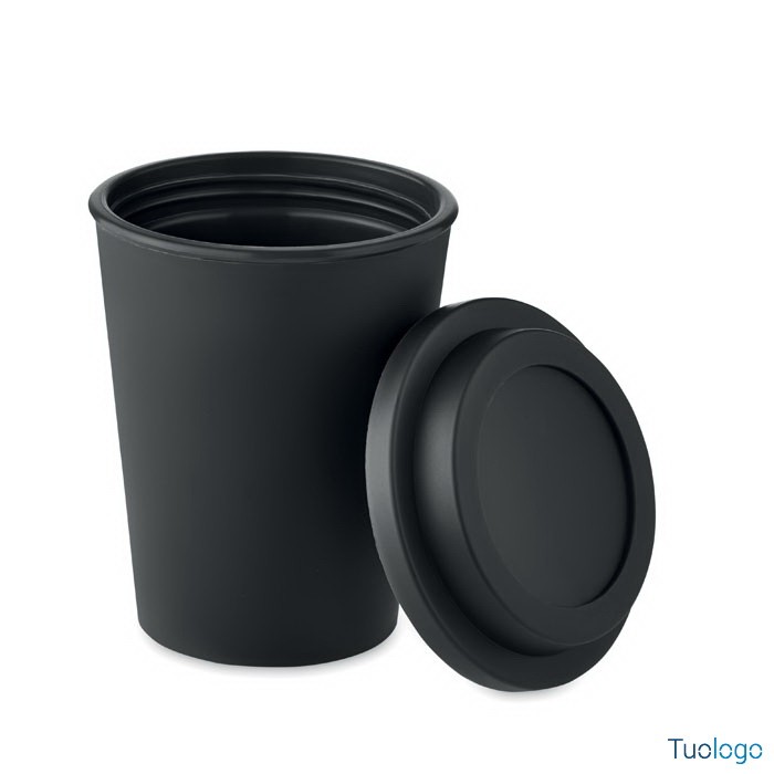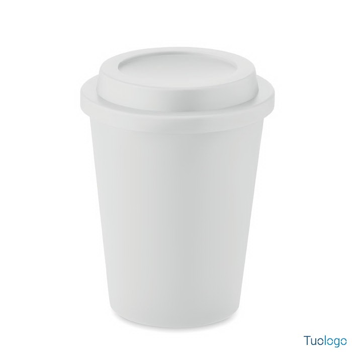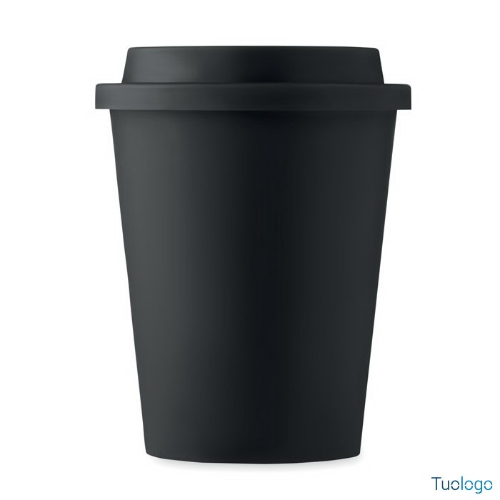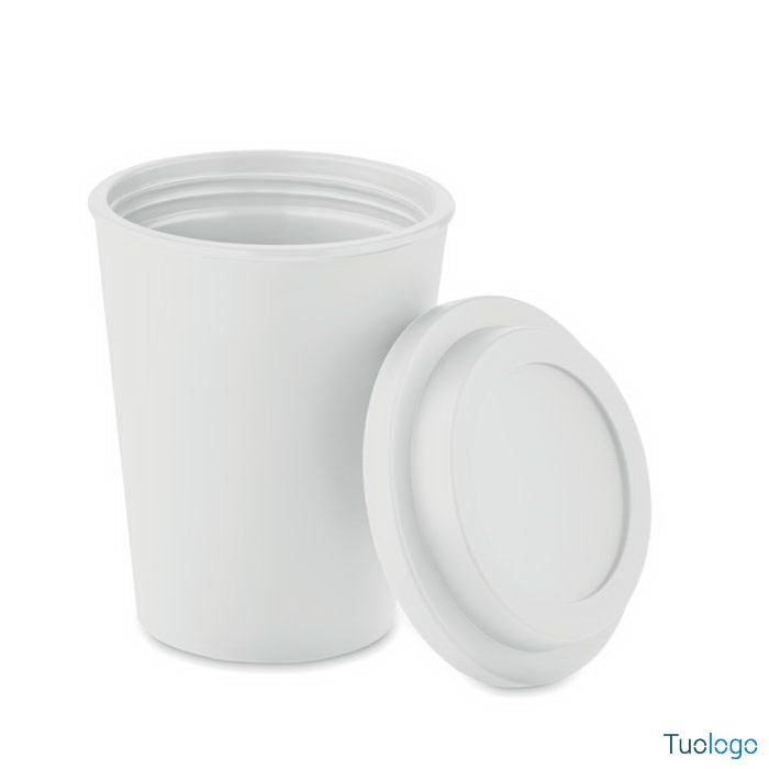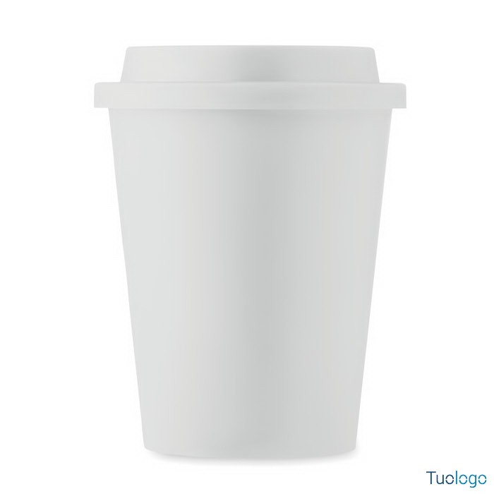 Tazza con coperchio Lanzo. Bicchiere a doppio strato in PP. Capacità: 300 ml. Senza perdite. Una semplice tazza tumbler che mantiene la bevanda calda per un lungo periodo di tempo. Dimensioni: diam cm 9x12.