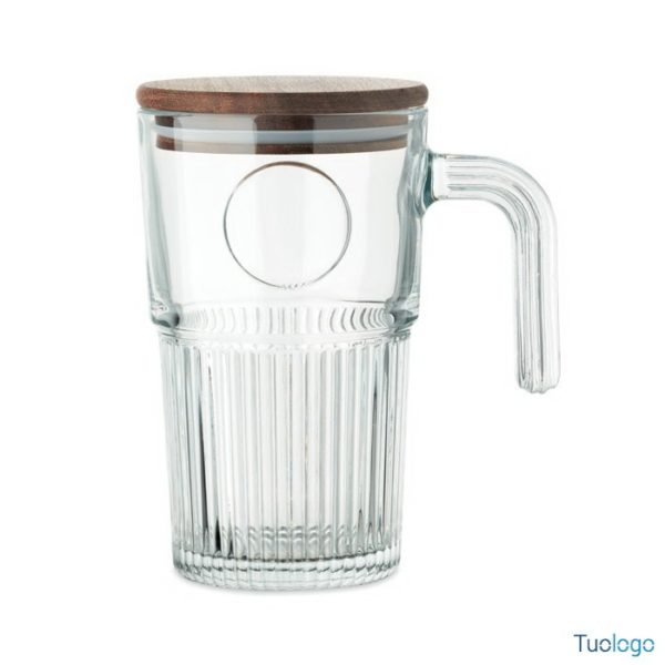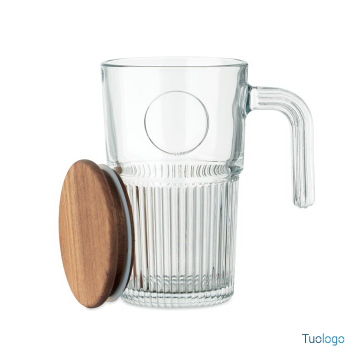 Tazza grande Molde. Tazza grande in vetro con coperchio in acacia. Capacità: 450 ml. SC®-certified. Dimensioni: 12,6x14,5 cm.