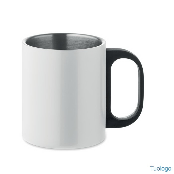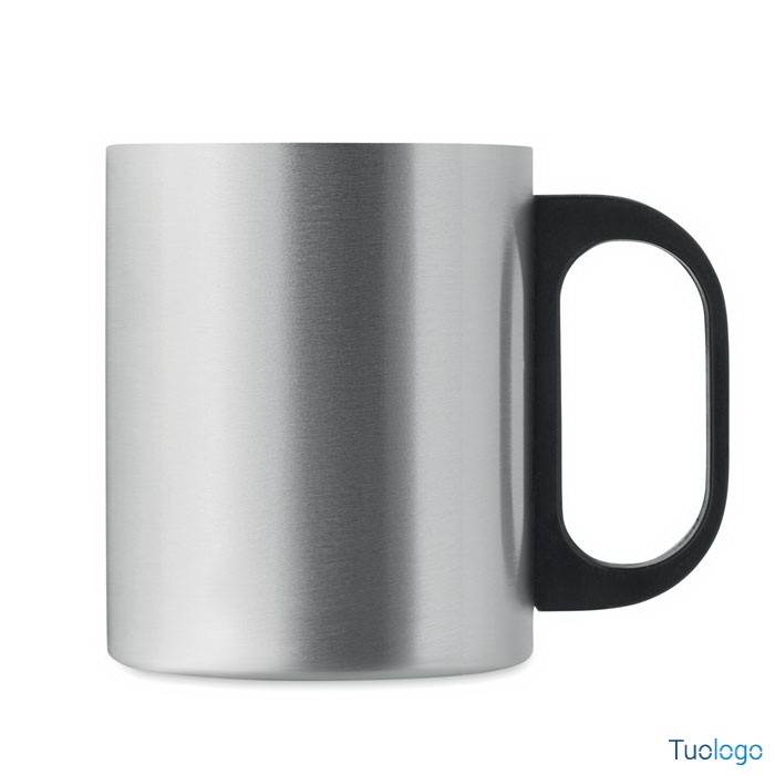 Tazza termica 300ml Banga. Tazza in acciaio inossidabile a doppio strato con manico in PP. 300 ml. Dimensioni: cm 11x8.5.