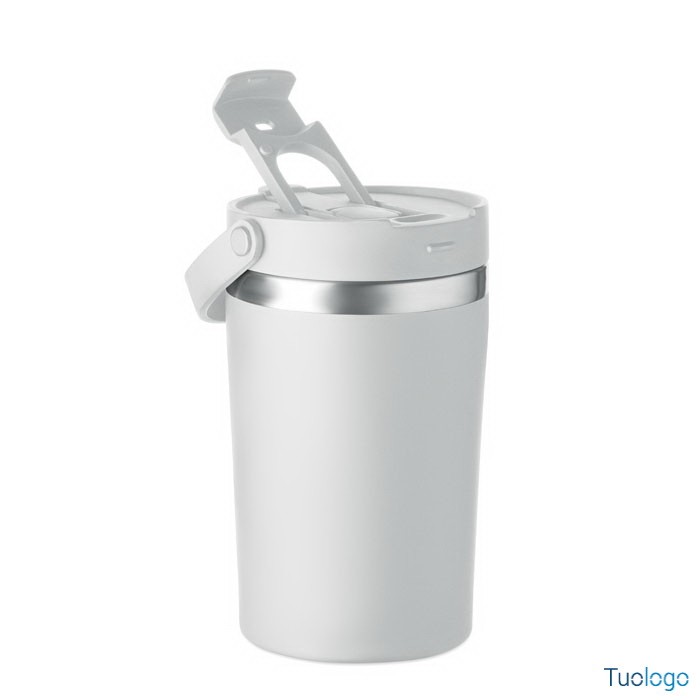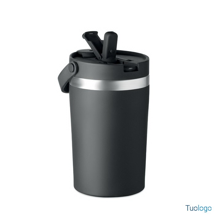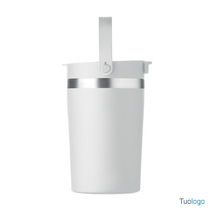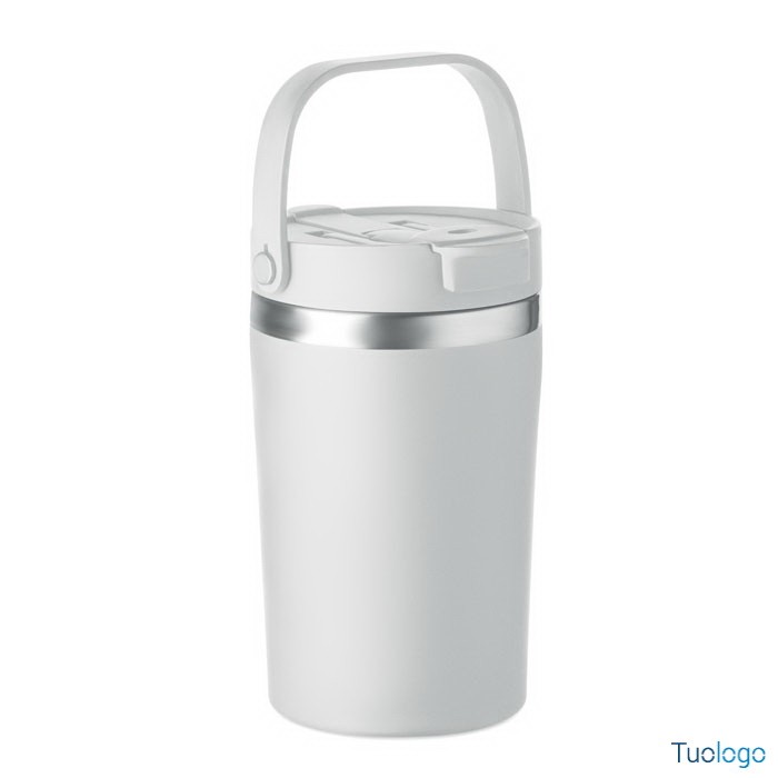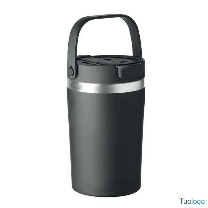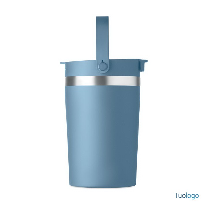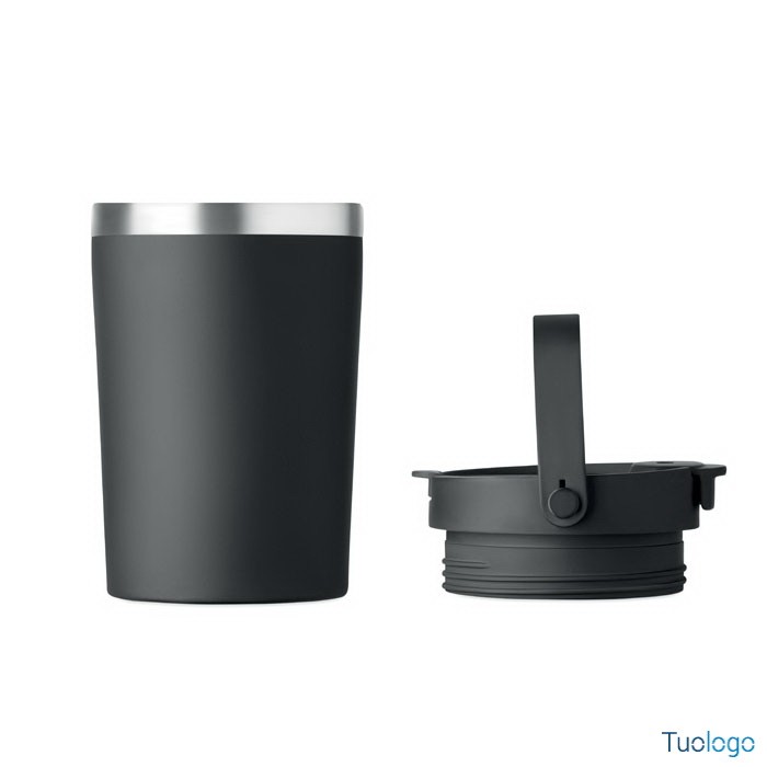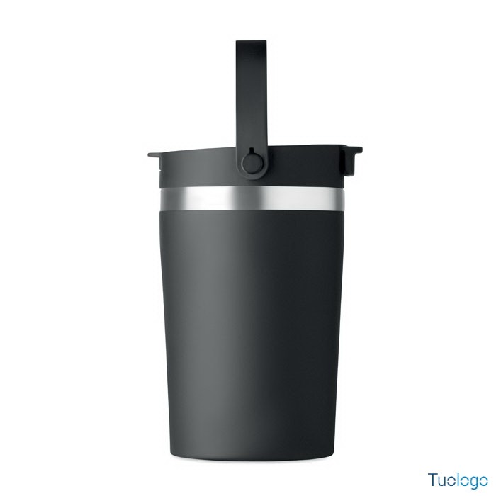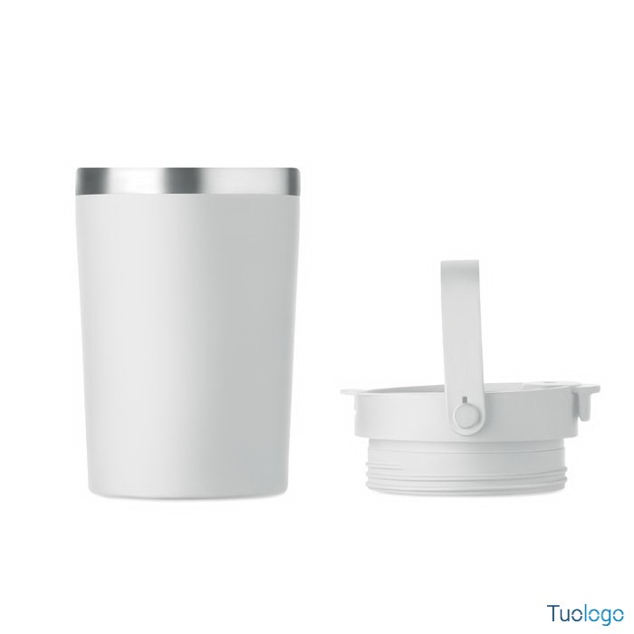 Tazza termica 350ml Linko. Bicchiere a doppio strato in acciaio inossidabile riciclato, coperchio 2-in-1 in PP tracolla in RPET. 350ml. Dimensioni: cm 16,1x11x14,5.