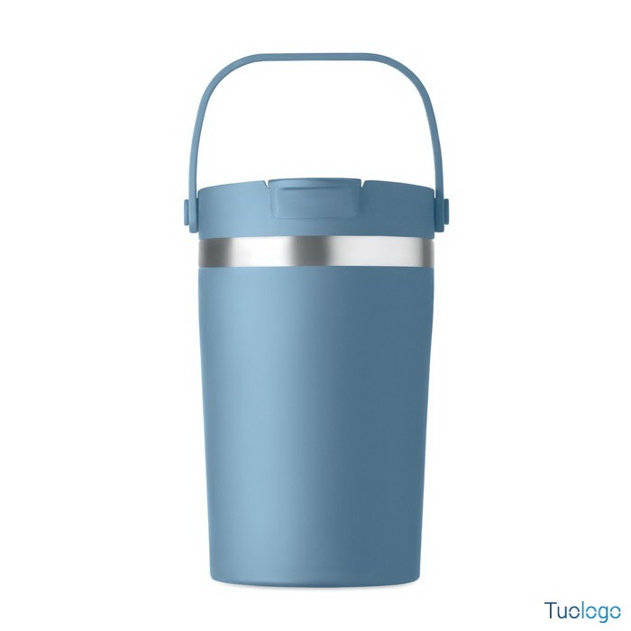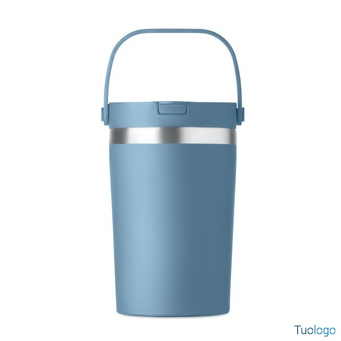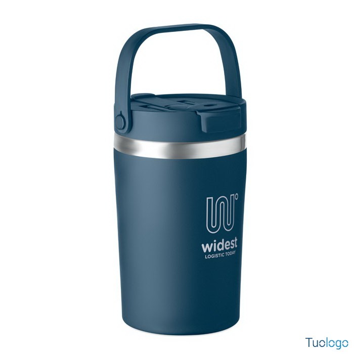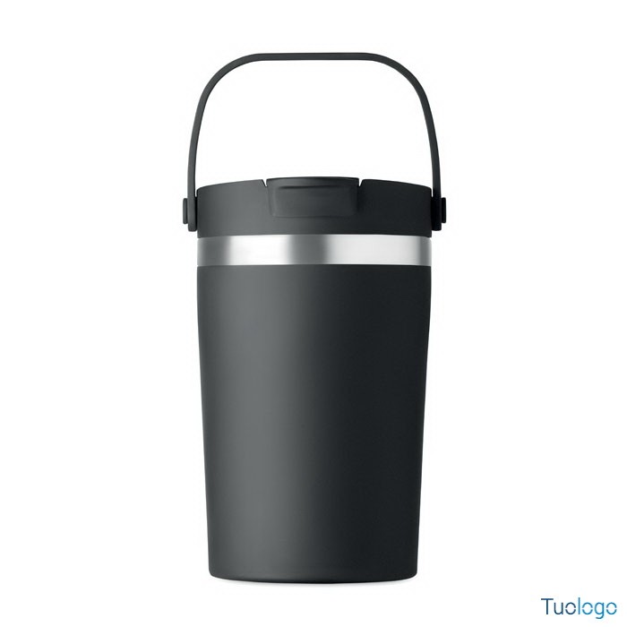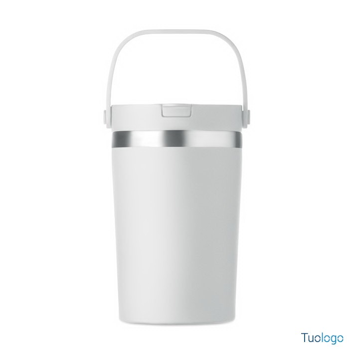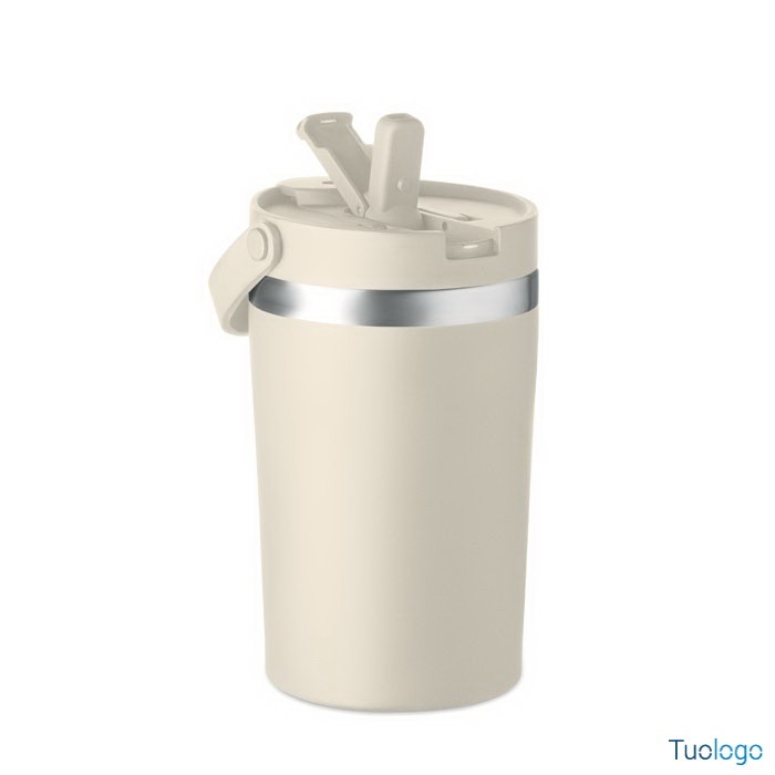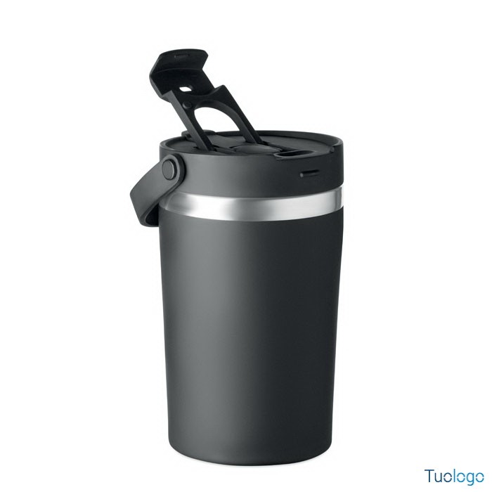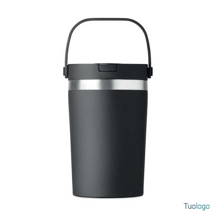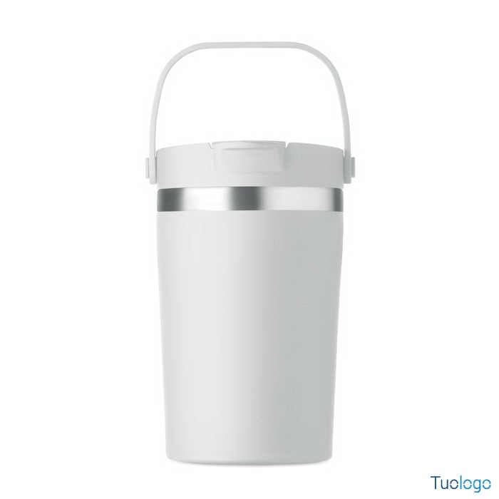 Tazza termica 350ml Linko. Bicchiere a doppio strato in acciaio inossidabile riciclato, coperchio 2-in-1 in PP tracolla in RPET. 350ml. Dimensioni: cm 16,1x11x14,5.