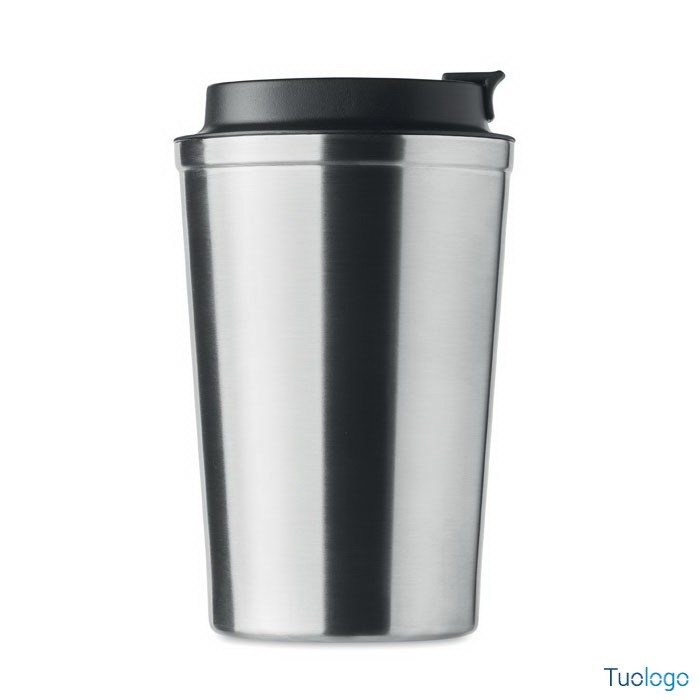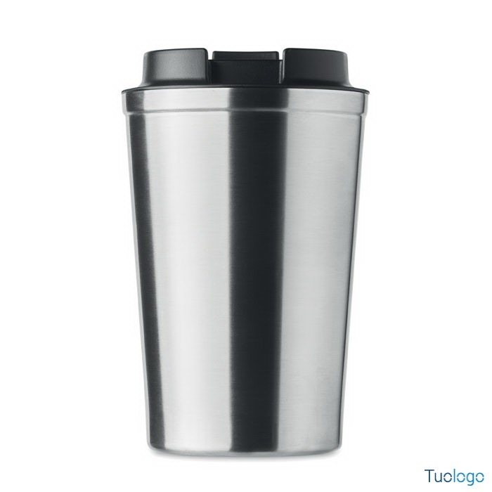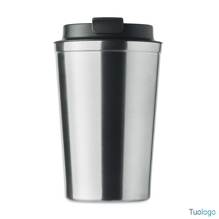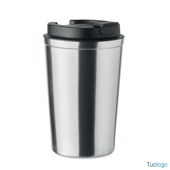 Tazza termica 350ml Vitia. Bicchiere a doppio strato in acciaio inox con coperchio in PP. 350 ml. Senza perdite. Dimensioni: cm 8,8x15,1.