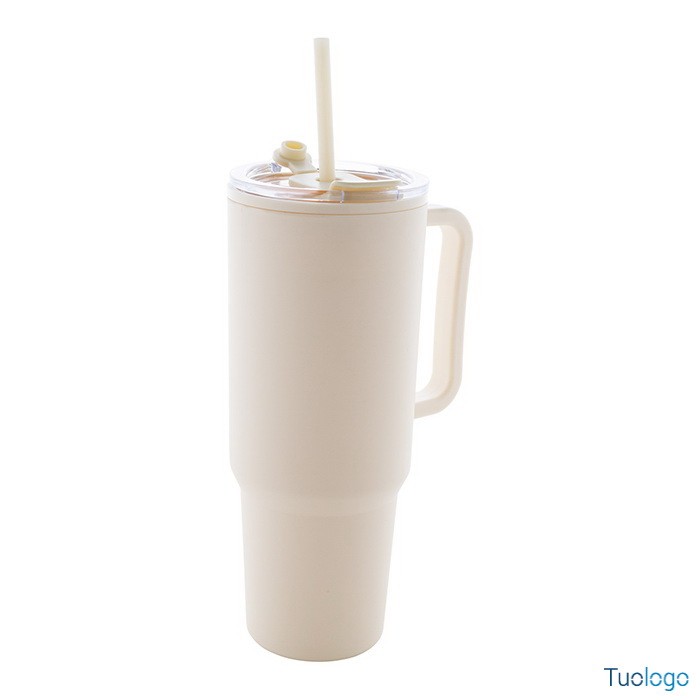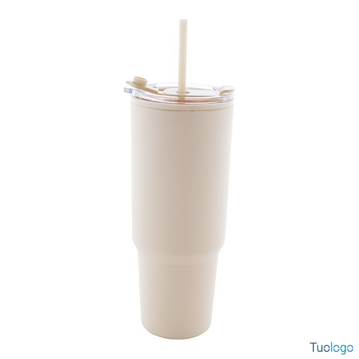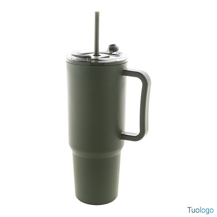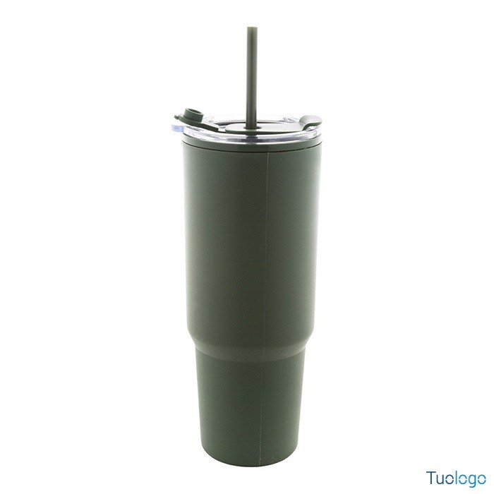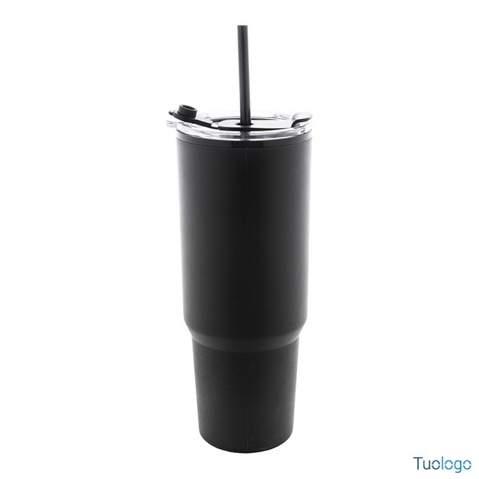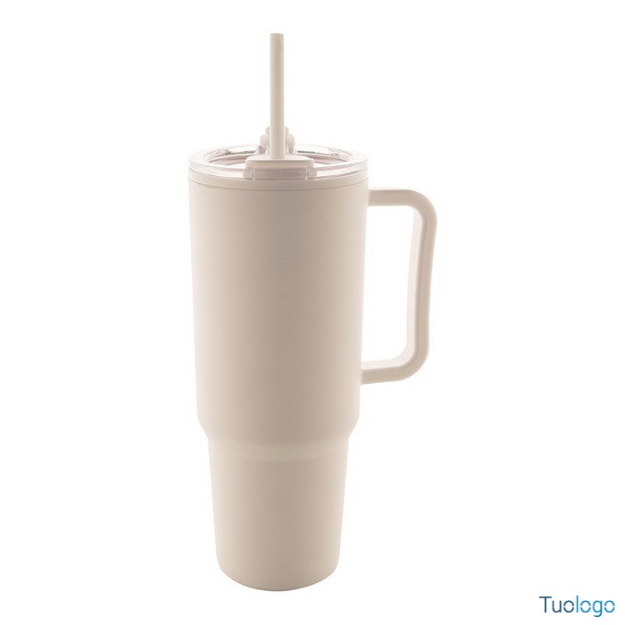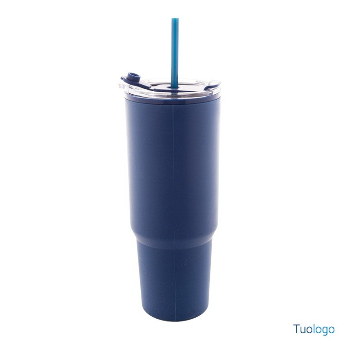 Tazza termica Deori. Tazza termica isotermica in plastica PP a doppia parete. Coperchio in PS e cannuccia in PP. Capacità 1100 ml. Dimensioni: diam cm 10×25.