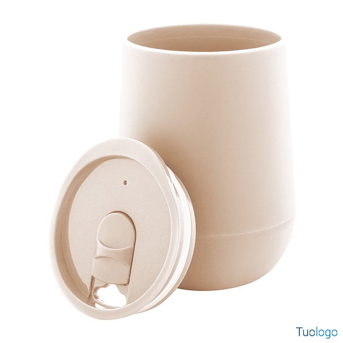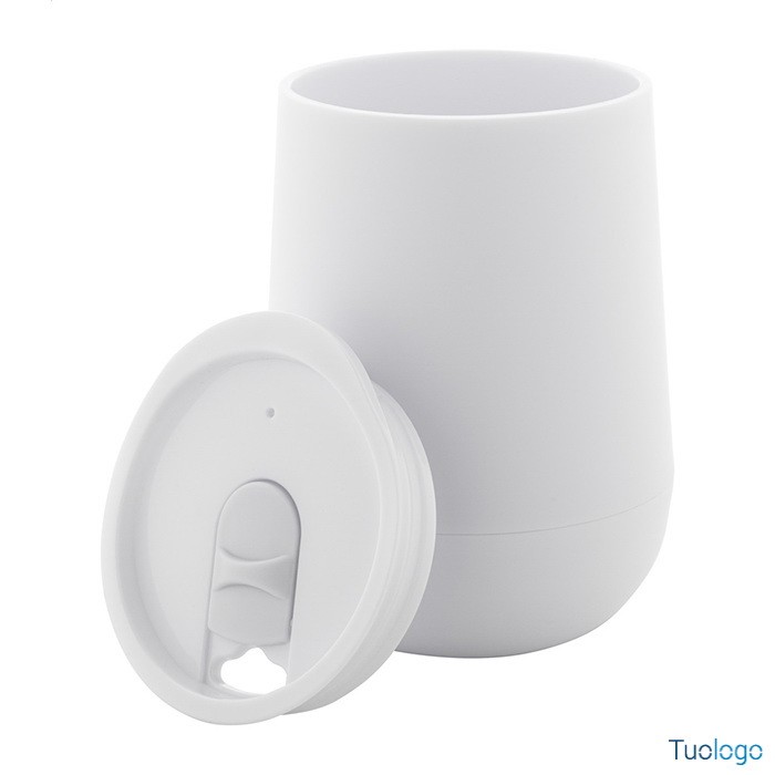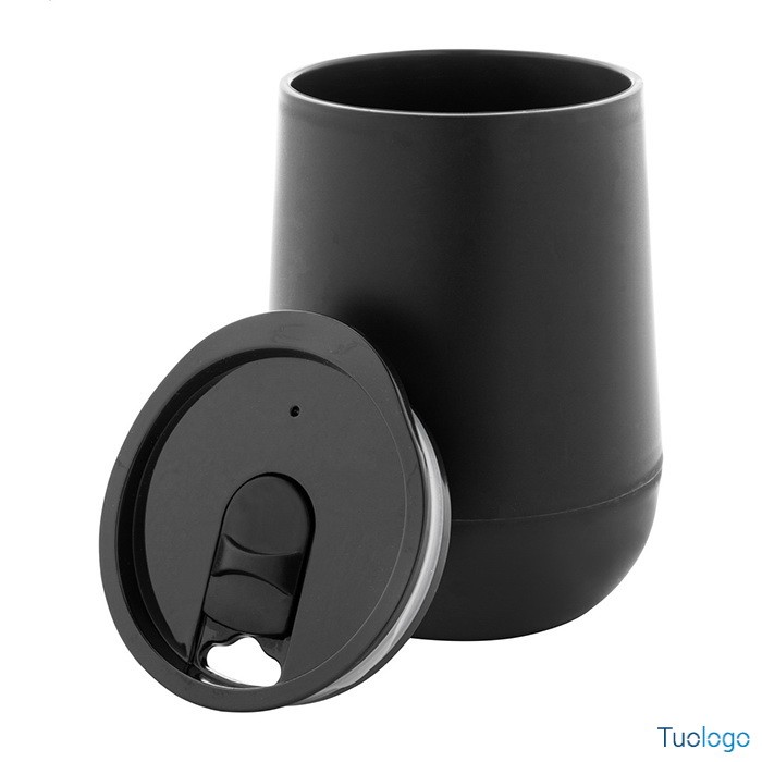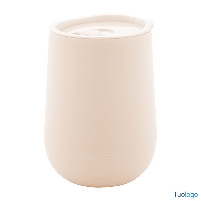 Tazza termica Osian. Bicchiere termico in plastica PP a doppia parete e coperchio erogatore. Capienza: 300 ml. Dimensioni: diam cm 8,9×12,4.