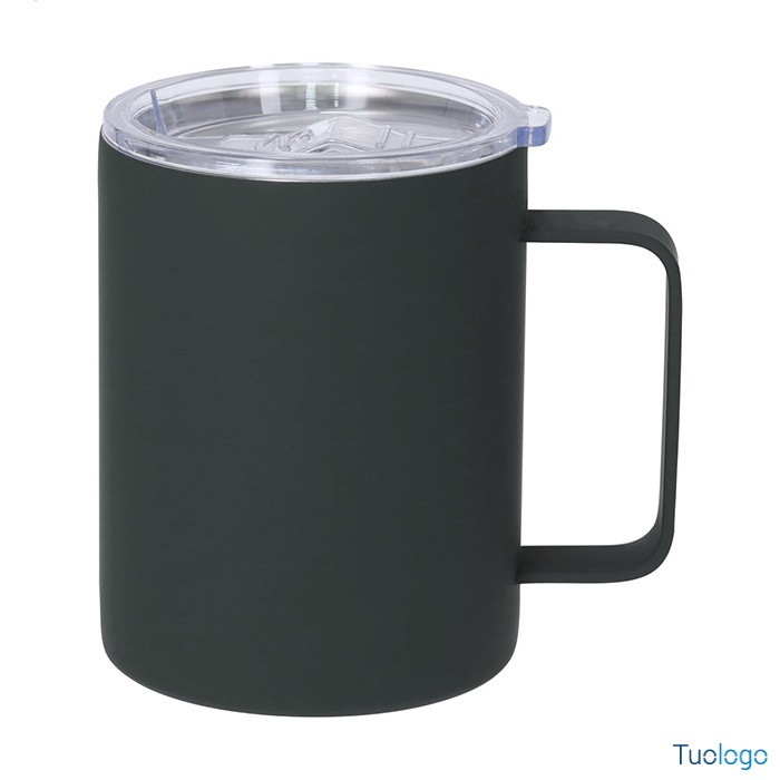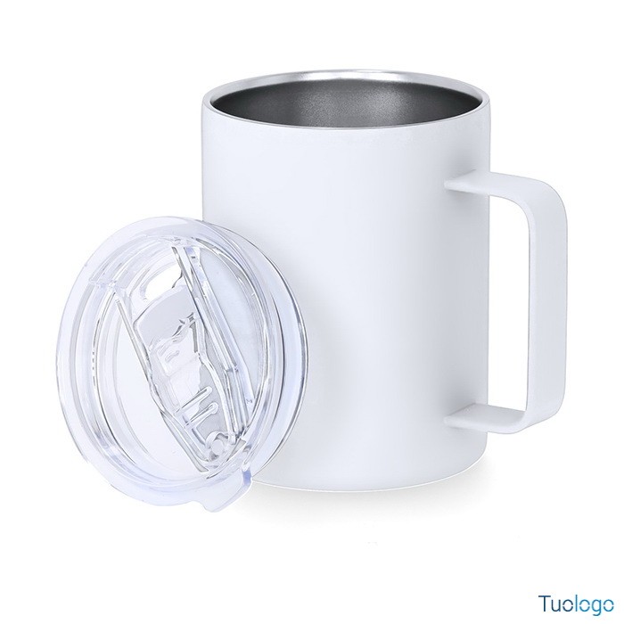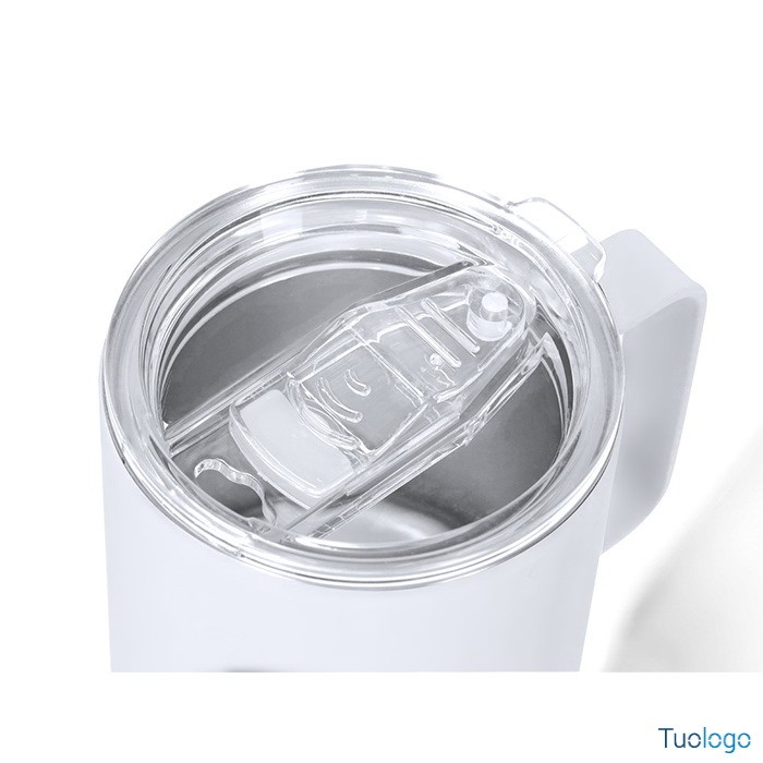 Tazza Xadela. Tazza termica da 400ml. in acciaio inox a doppia parete con finitura gommata e coperchio erogatore. Dimensioni: mm 88x117.