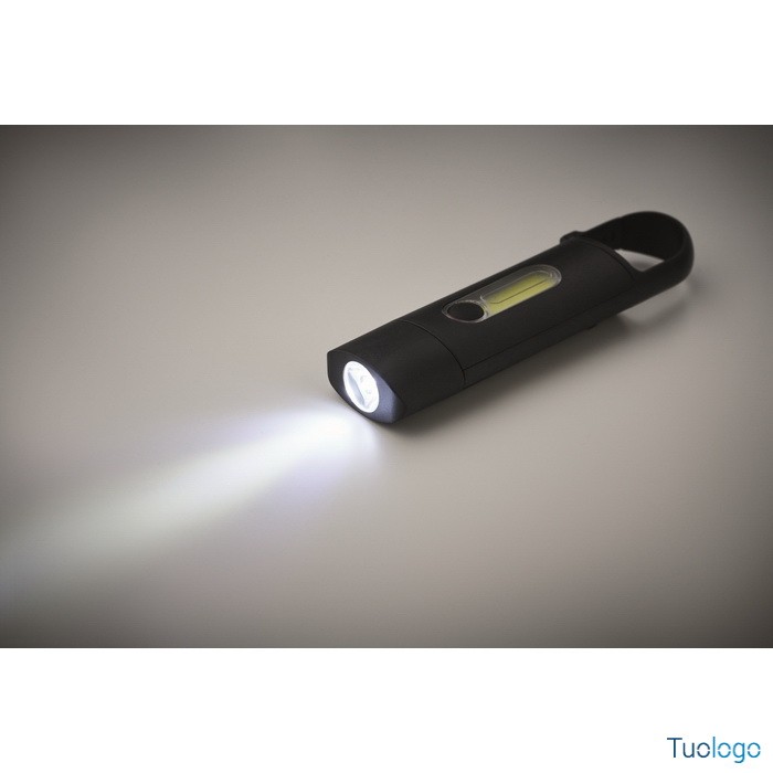 Torcia Blox. Torcia COB ricaricabile tascabile con moschettone in ABS. Luce di emergenza e 3 modalità di illuminazione. 1 batteria ricaricabile da 3,7 V, 200 mAh (inclusa). Dimensioni: cm 11X3X1,5.
