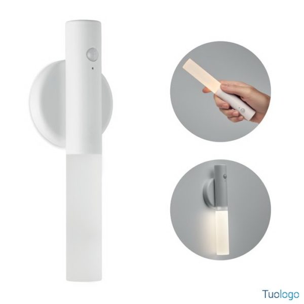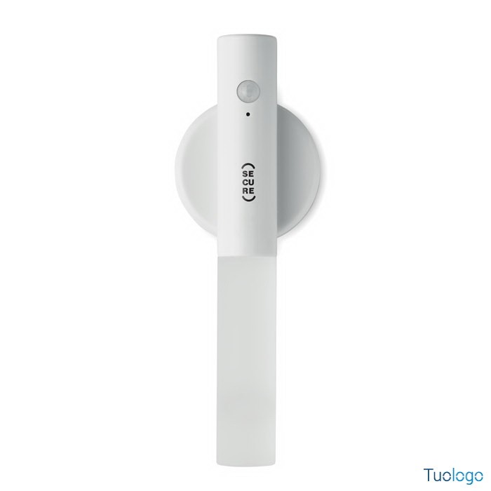 Torcia di emergenza a sensore in ABS Bràuna. Torcia di emergenza a sensore in ABS e acrilico con base magnetica. Batteria ricaricabile da 300 mAh incorporata e cavo di ricarica. Dimensioni: cm 6x18x3,5.