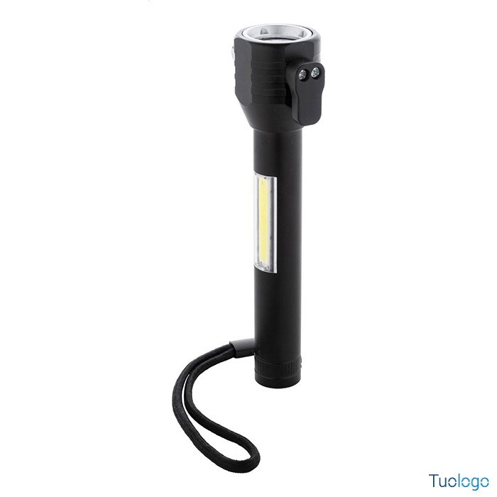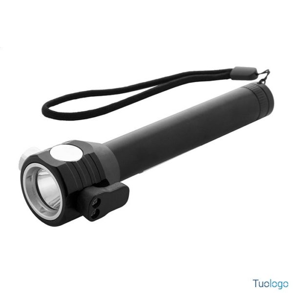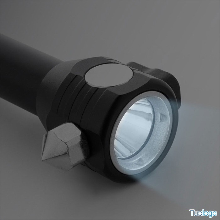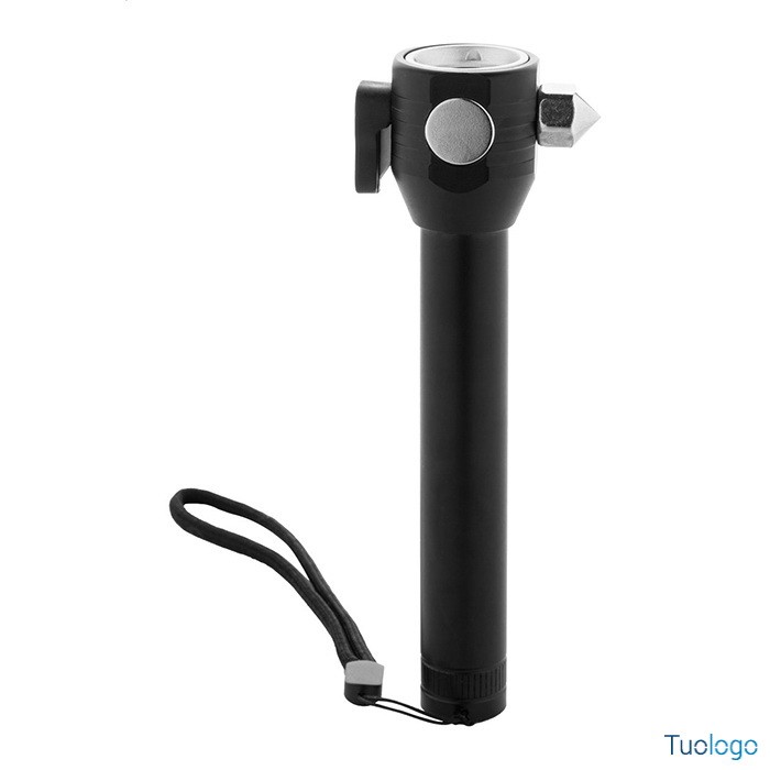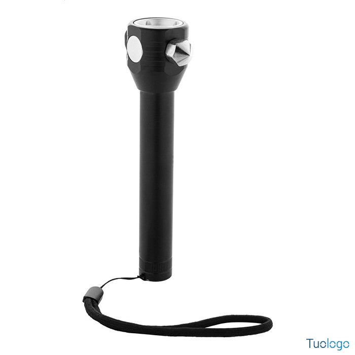 Torcia di emergenza Pike. Torcia in alluminio con martello di emergenza e taglia cinture di sicurezza. Completa di batteria ricaricabile USB integrata. Magnete,cinturino,luce COB. Dimensioni: diam cm 2x16,3.