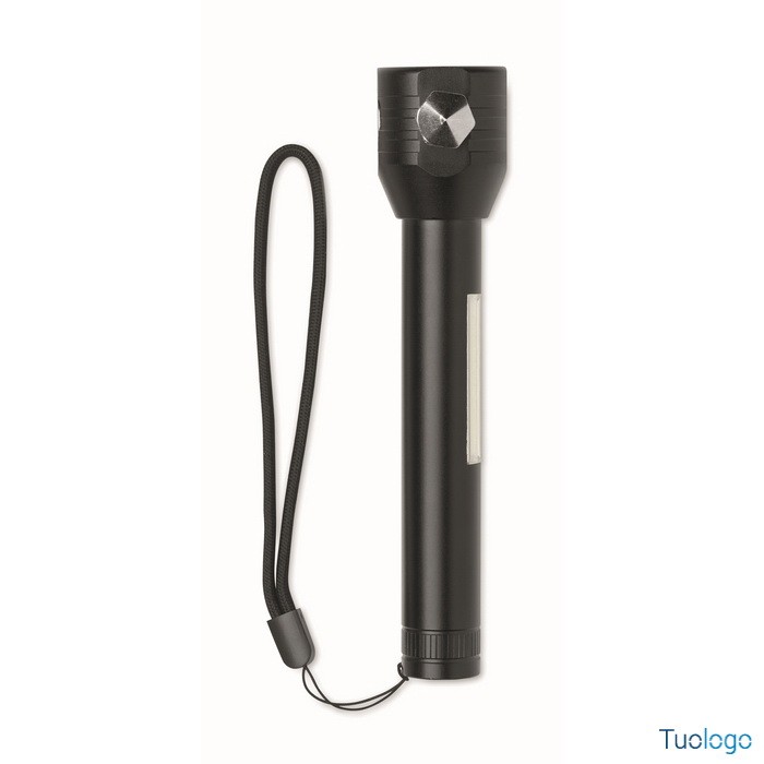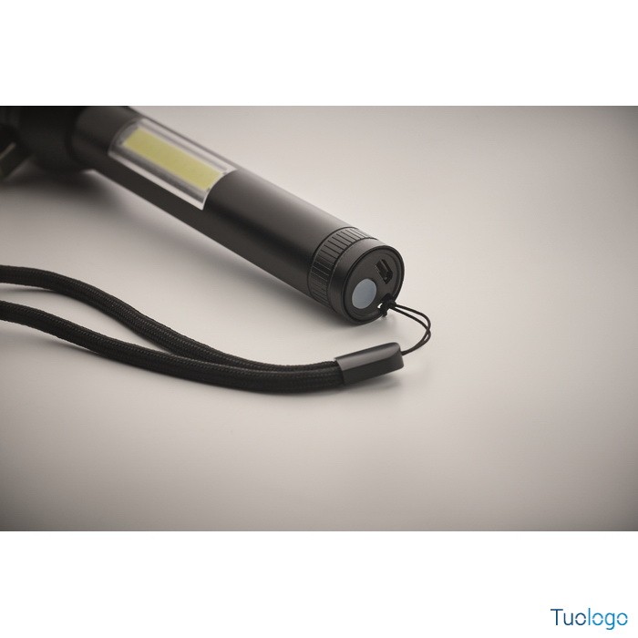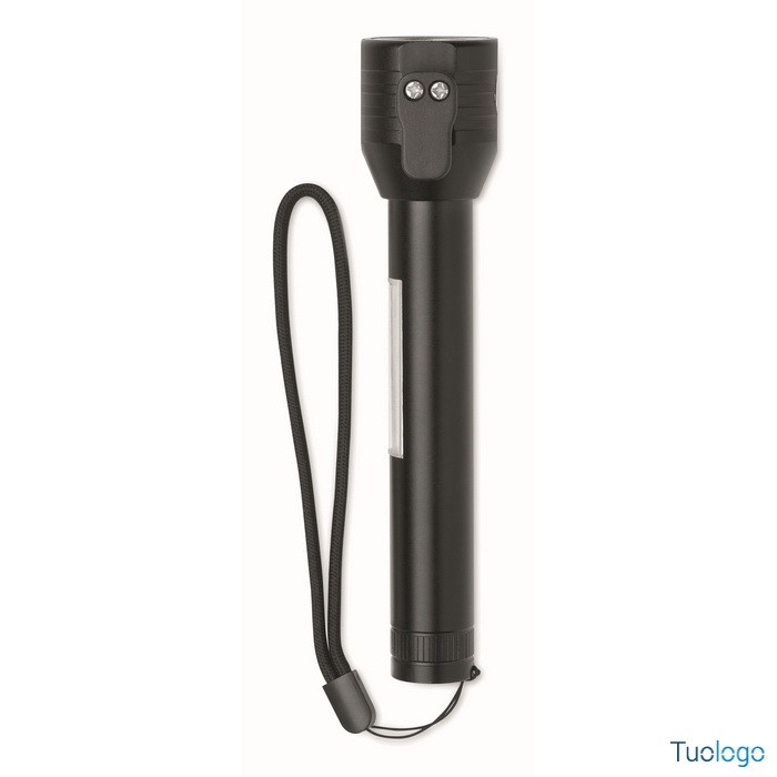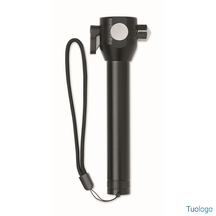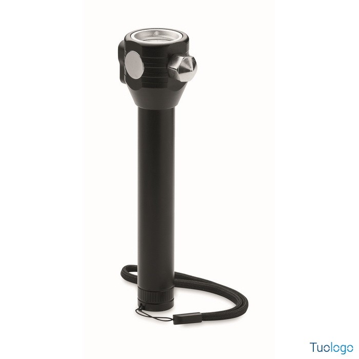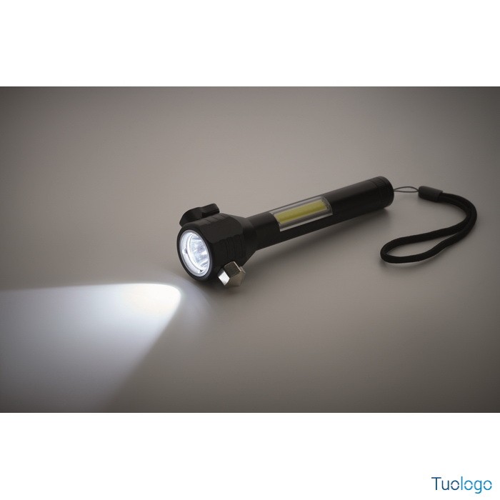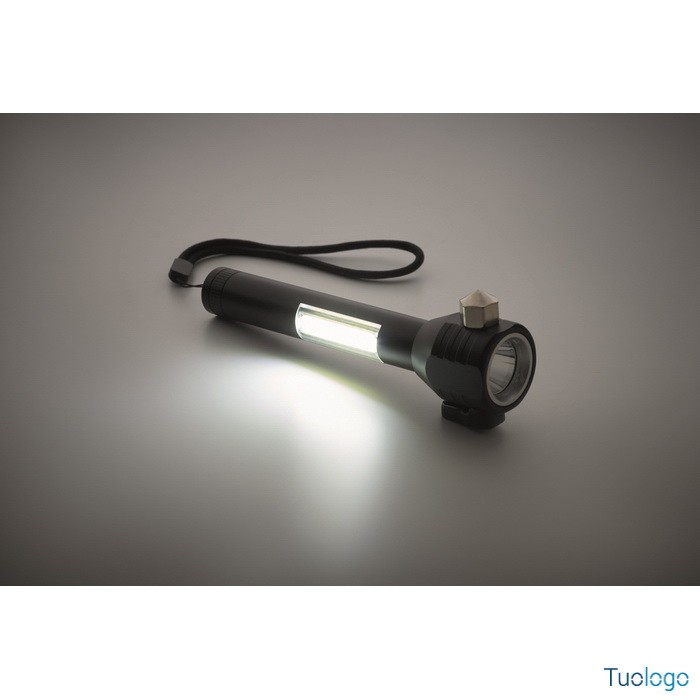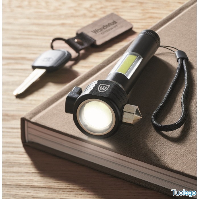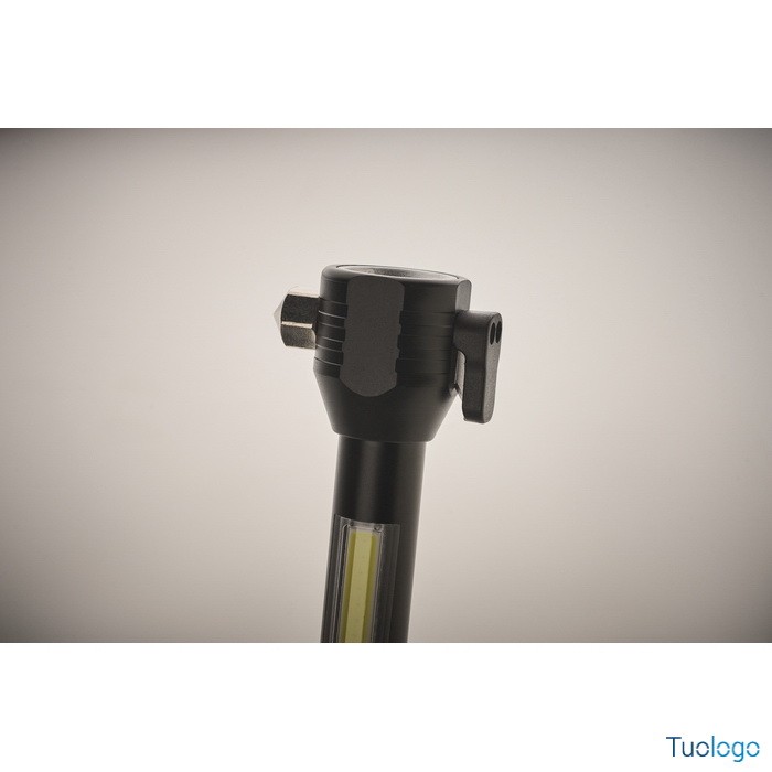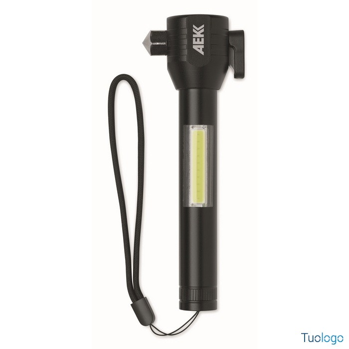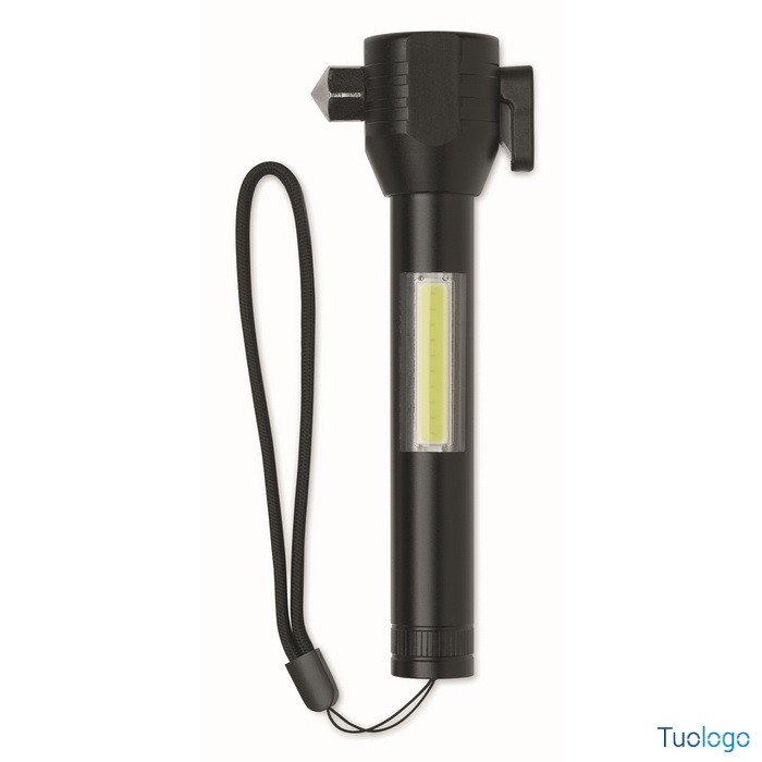 Torcia Ulumaz. Torcia in alluminio 3 in 1 con martello di emergenza e taglia cinture di sicurezza. Ha una luce COB laterale e anteriore. Incluso magnete e cinturino da polso. Dimensioni: cm 16,1X5,8.