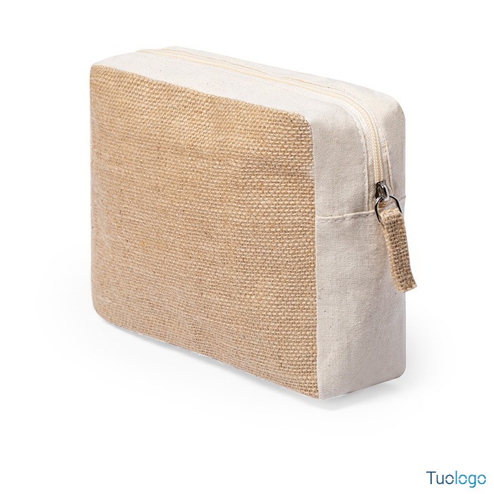 Trousse Lameiras. Trousse per cosmetici in cotone e juta laminata, con cerniera. Dimensioni: cm 20x15x6.