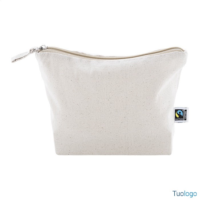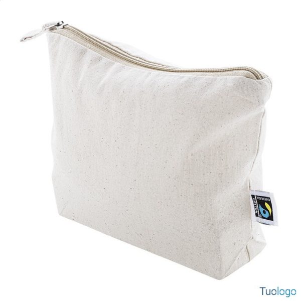 Trousse per cosmetici Joyce. Trousse per cosmetici in 100% cotone equosolidale con cerniera ed etichetta Fairtrade. Dimensioni: diam cm 23×17×6.