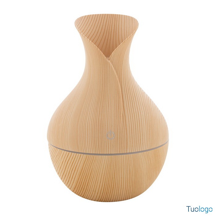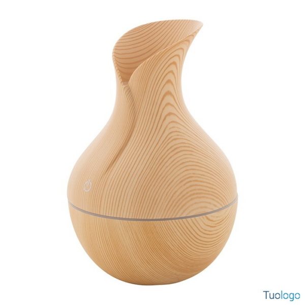 Umidificatore da tavolo Huslia. Umidificatore da tavolo in plastica con effetto legno, serbatoio da 130ml e luce LED multicolore. Fornito con cavo di ricarica USB. Dimensioni: diam cm 10,2×15.