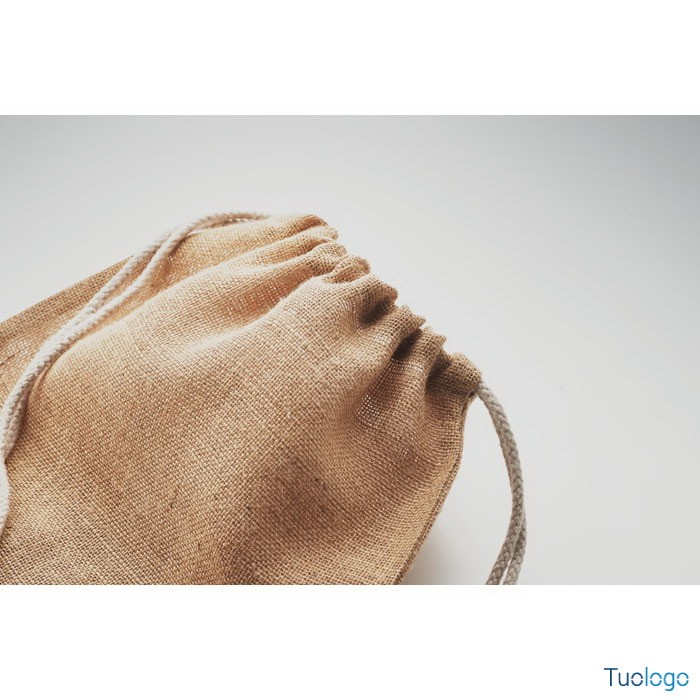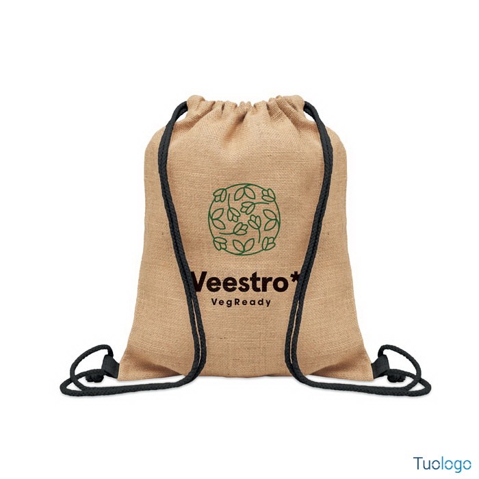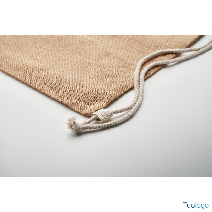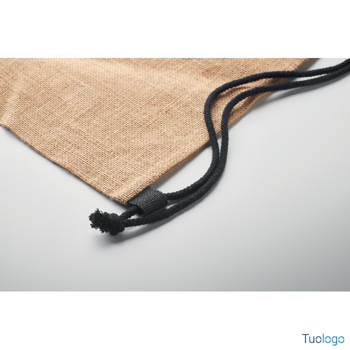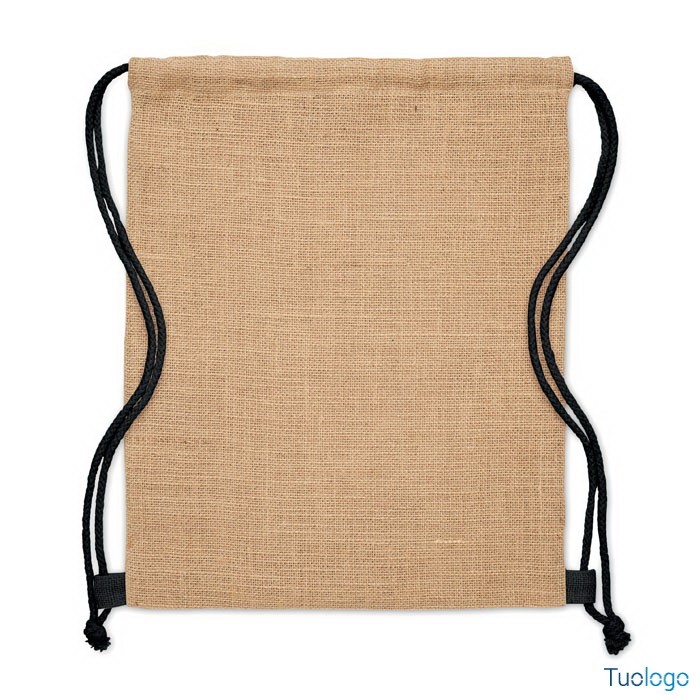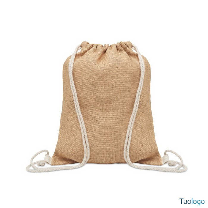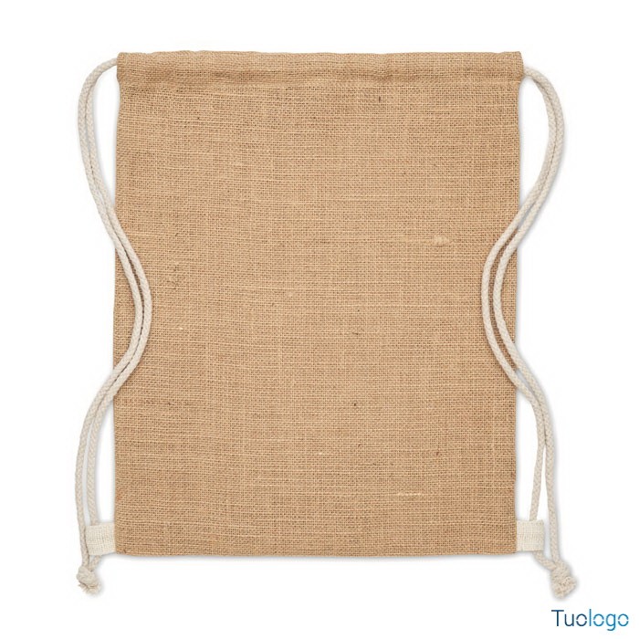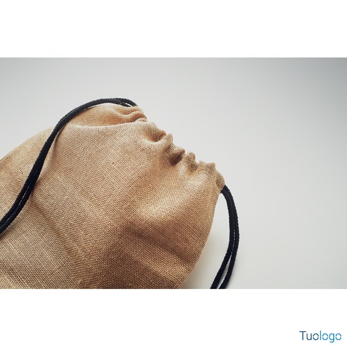 Zainetto gym juta Vizze. Sacca con coulisse in juta e cordoncino in cotone. Dimensioni: cm 33x41.